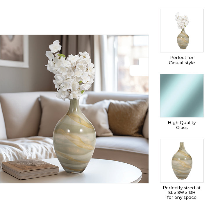 Elevate your home’s ambiance with the CHARU Small Green Vase, a stunning piece of decor that seamlessly blends timeless elegance with modern style. Crafted from exquisite glass, this 8″ vase showcases a serene green hue with mesmerizing swirls that catch the light and captivate the eye. Perfectly sized for any space, its dimensions offer a tasteful accent that complements any setting. This unique glass vase will add a touch of sophistication to your home.