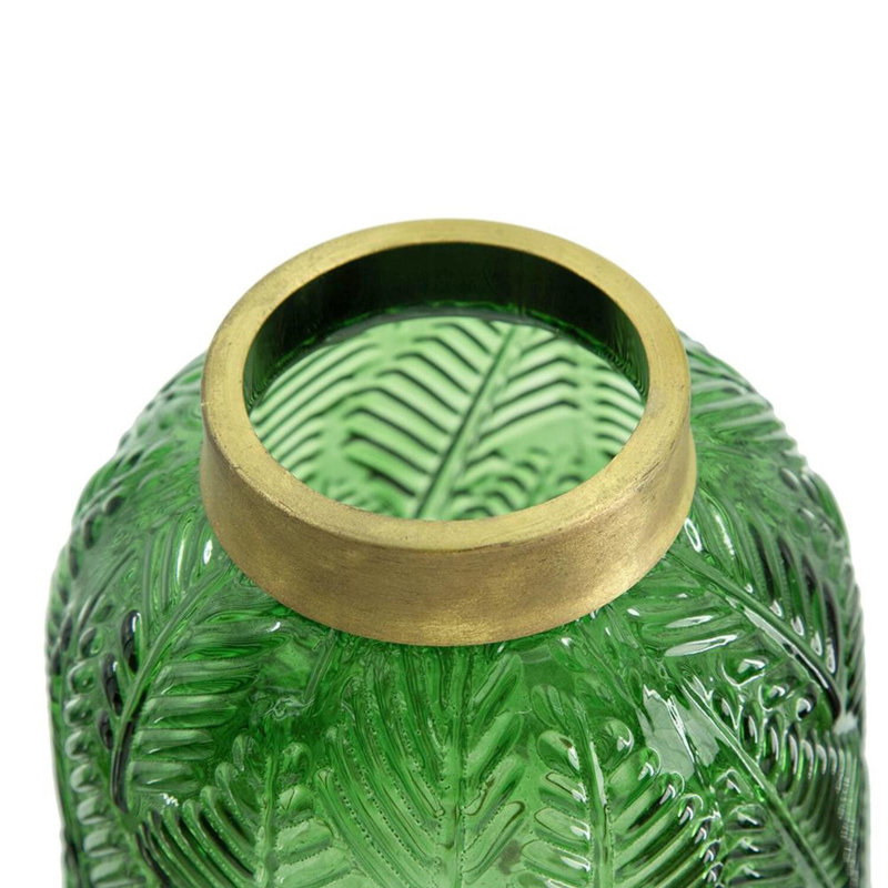 • Features a vibrant green hue with delicate fern leaf patterns and a distinctive little metal neck accent. This combination creates a unique, elegant, and retro look that instantly enhances the visual appeal of any space.