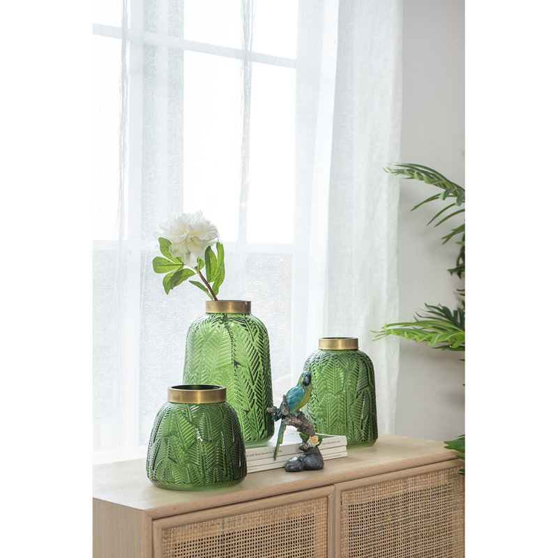 • Its casual living style makes it suitable for home or office use, perfect for accessorizing an entryway table, living room mantle, or office shelf. It complements Bohemian styles and can be featured alone for a bold statement or combined with other Green Fern Leaf vases for a cohesive, dynamic look.