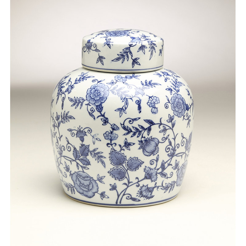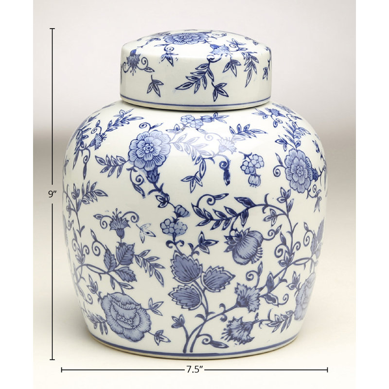 The Farber Floral Jar deserves a spot in your jar collection courtesy of its classic form and design. It is of porcelain material boasting a bulbous shape with stylized floral patterns on a classic blue and white background. You can place this in your china cabinets for display and it would be an eye-catching piece. The jar comes with a matching lid.