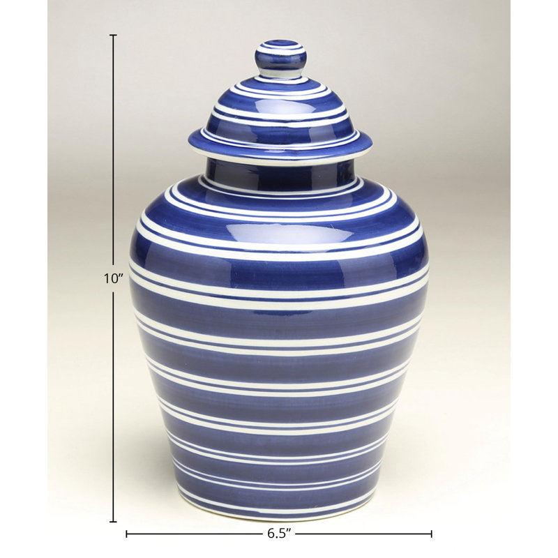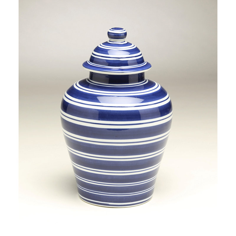 The Farber Striped Urn deserves a spot in your jar collection courtesy of its classic form and design. It is of porcelain material boasting a bulbous shape with blue and white stripes design. You can place this in your china cabinets for display and it would definitely be an eye-catching piece. The urn comes with a matching lid.