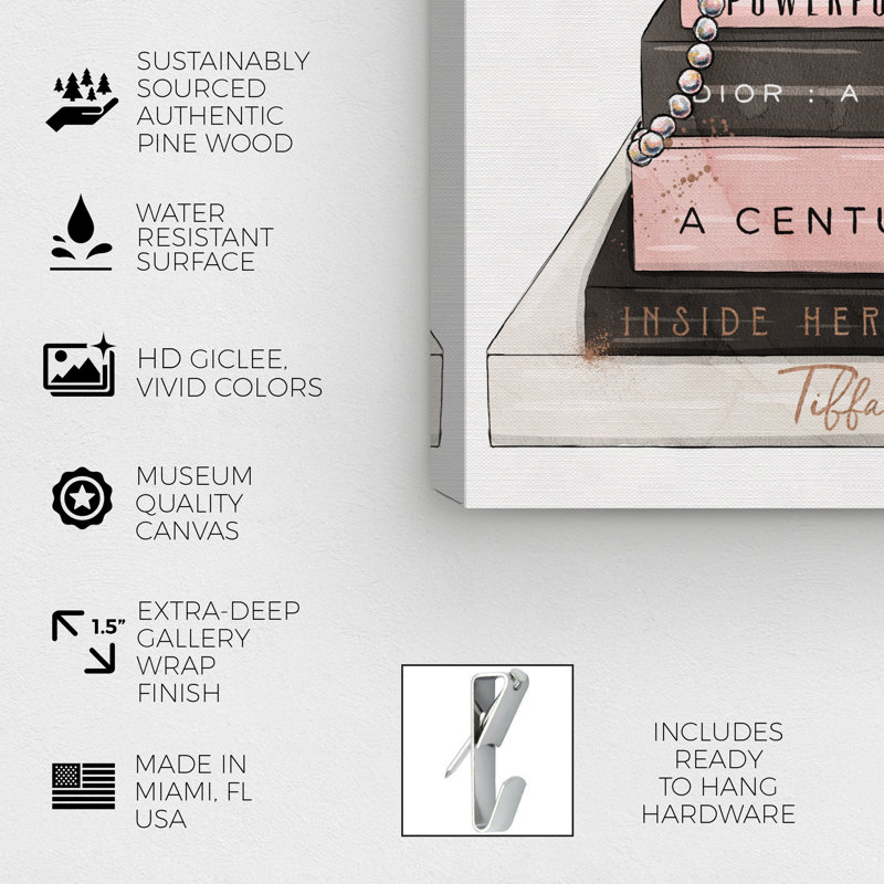 Fashion and Glam Classic Stiletto and High Fashion Books, Glam and Pastel Canvas Wall Art for Closet