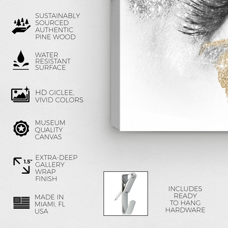 Make any space in your home innovative and unique by adding this glam art piece made by real artists. With an overarching gray color that will add a dynamic feel to your home decor, this fine art piece is printed using ultra-premium and fade-resistant inks to guarantee high definition and vivid colors. Our wall art is carefully wrapped with a layer of shrink-wrap that protects the surface and then wrapped with heavy-duty bubble cushion, ensuring its safe arrival to its new home. This fine art print features a fashion and makeup design to bring you the perfect finishing touch to your home decor theme.