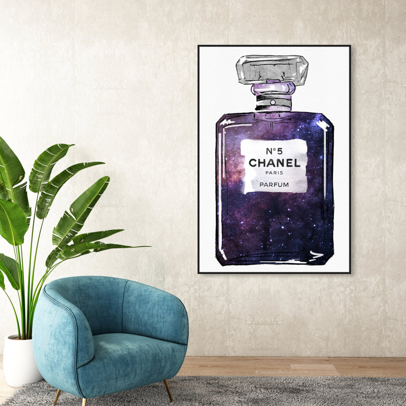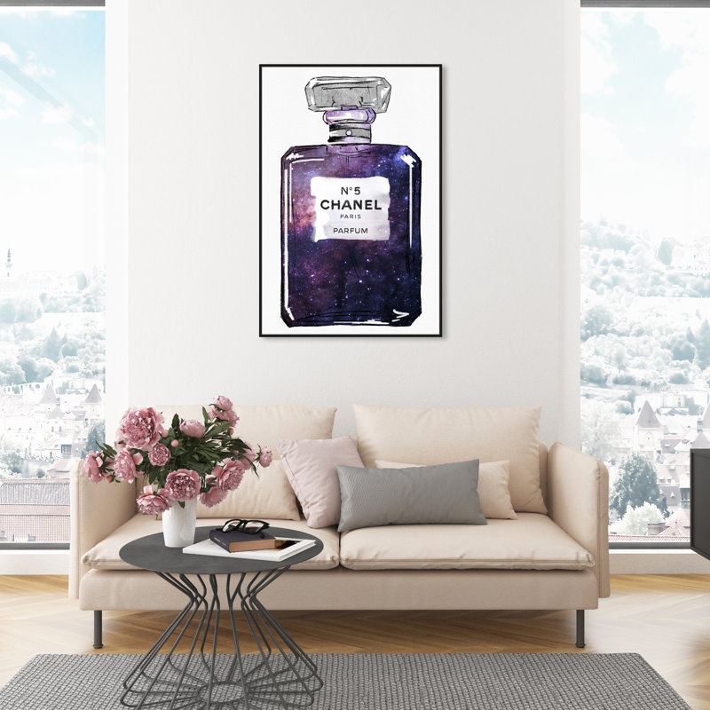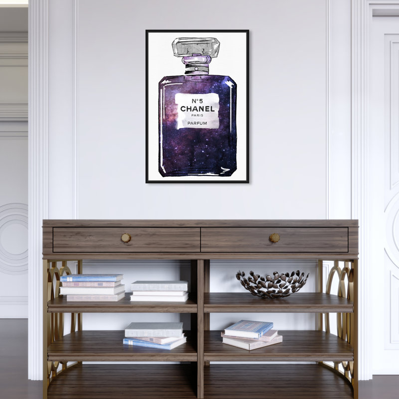Complete your wall decor with this chic print ‘Galaxy to Paris Parfum.’ This artwork’s exceptional design of Purple Fashion and Glam will make a statement in your home or office with intriguing elements of White Perfumes. Create a perfect pair or complete a gallery wall by checking out our other Glam styles!