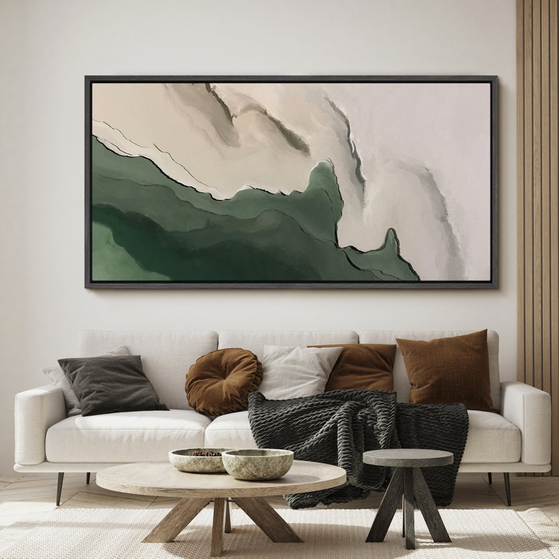 Faux Texture Abstract Green Minimalist Modern Artwork – Extra Large Framed Wall Art Canvas Print