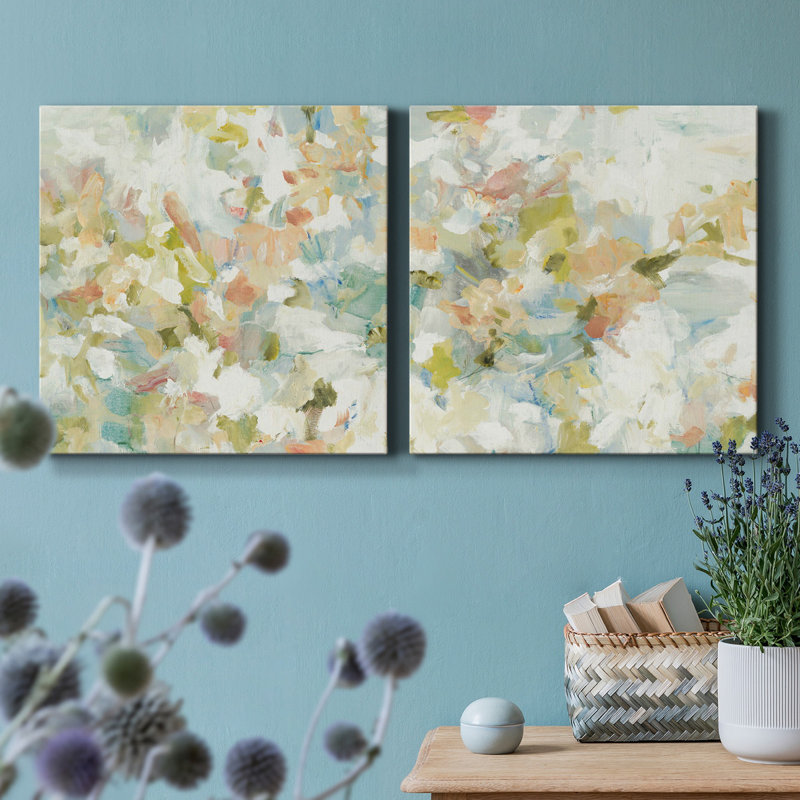This 2-piece painting print set transforms a blank wall with natural movements of elegant floral colors. Originally a single image, it’s a recreation printed with quality inks across two pieces of wra…. Read More.