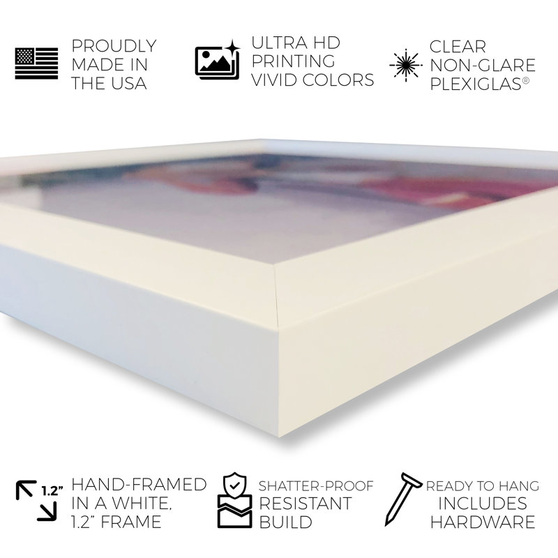 This floral-inspired graphic art print brings a luxe and romantic look to your bedroom or living room walls. It features the image of blooming white roses inside of a silver vintage-inspired vase, and it showcases shimmering gold accents and a distressed texture for glam style. This graphic art print is made in the USA, and it uses ultra-premium and fade resistant inks to keep it looking good over time. Plus, it comes with a variety of framing and sizing options to choose from that best suit your space.