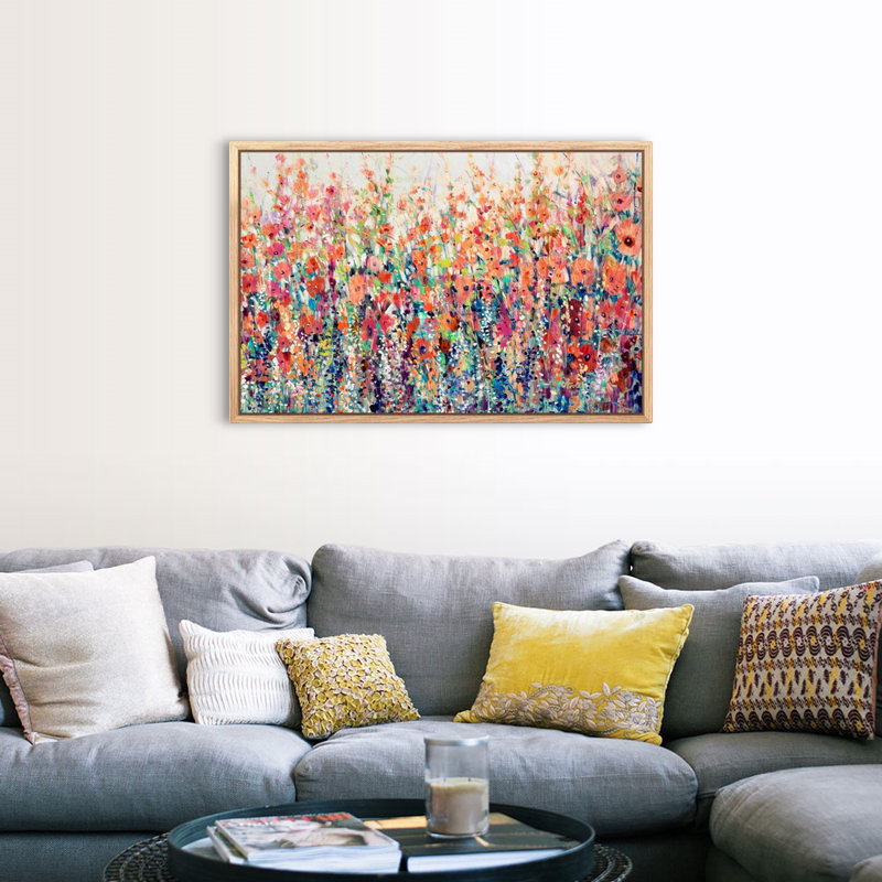 This rectangular painting print on artist-quality canvas shows a field of colorful wildflower blooms that bring a smile to your face when you walk into the room. A red and pink poppy field with an art…. Read More.