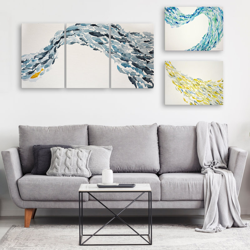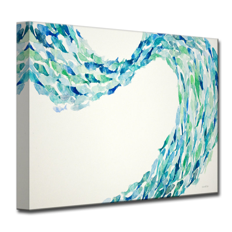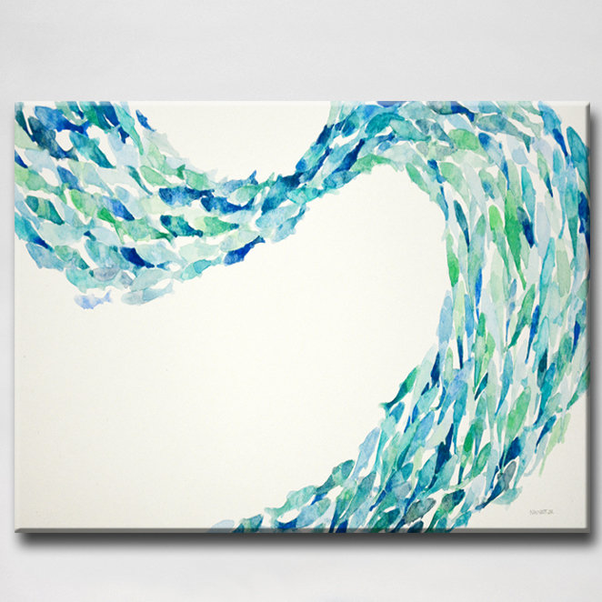 The exquisite group of blue and green-toned fish shoaling as one, socially protect one another in this horizontal coastal art. The decorative Norman Wyatt artwork, ‘Flow’ will complement your space with its transitional and contemporary aesthetic. This piece is handcrafted in Chattanooga, Tennessee by Ready2HangArt using a locally sourced artist print on canvas, and assembled on an eco-friendly pine wood frame finished with a rear hanger for simple installation. Offering a wide range of subjects and unique textures, Norman Wyatt’s collections will add interest to any modern or contemporary decor.