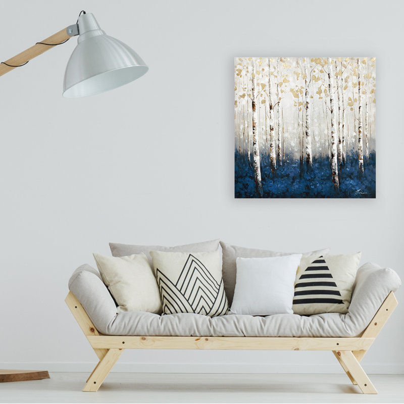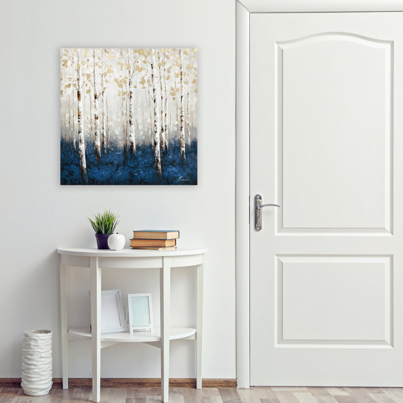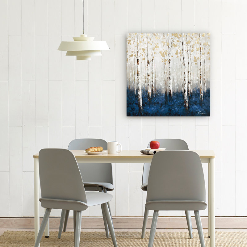 - 🲠Elegant Forest Scene – Showcases a misty birch grove with rich blue undergrowth and shimmering gold accents.