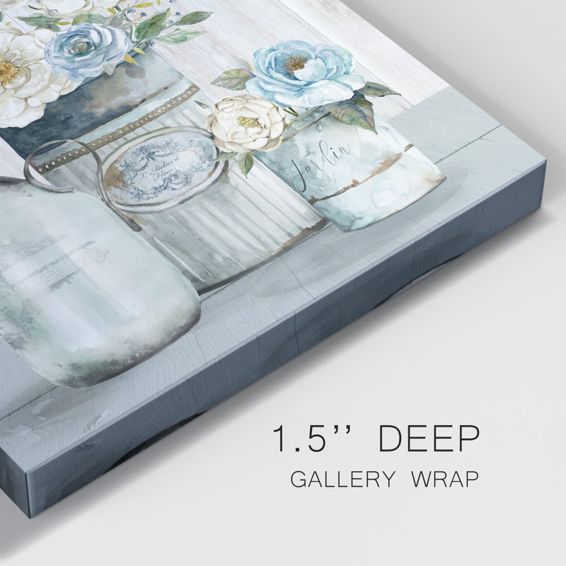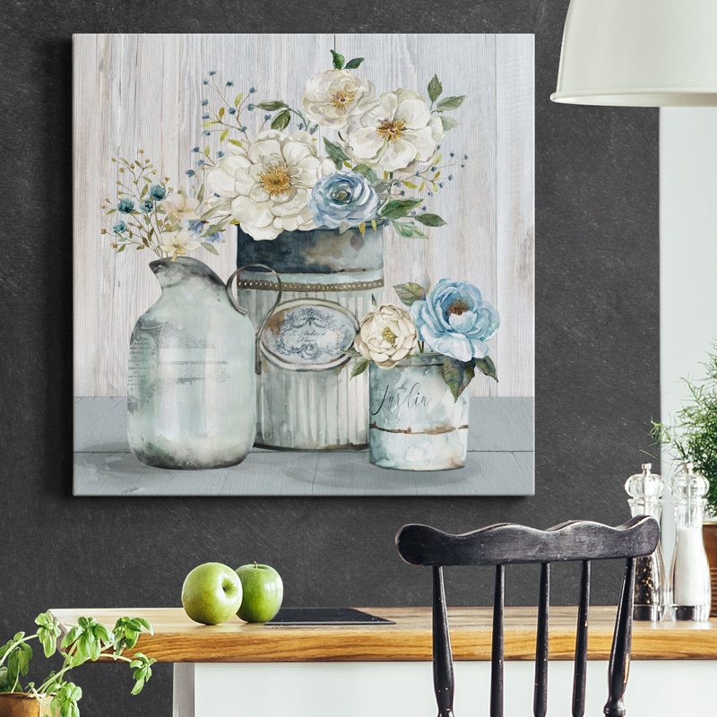 This canvas print, titled “Fresh Garden Flowers II,” adds a serene and calming look to your home decor. The wrapped canvas showcases flowers coming out of vintage tin cans jars with a lightly weathere…. Read More.