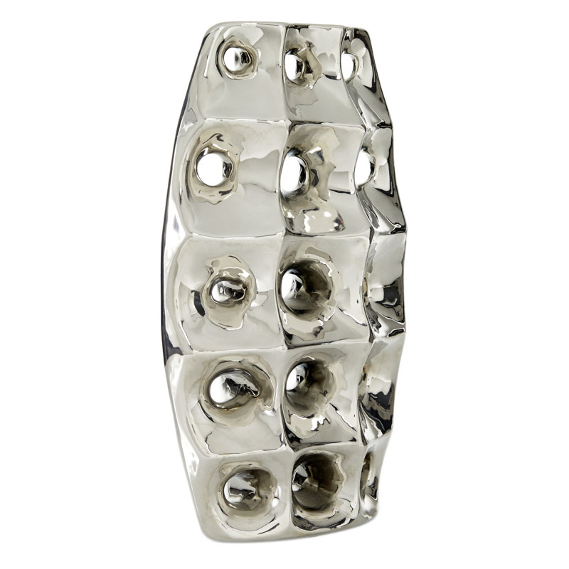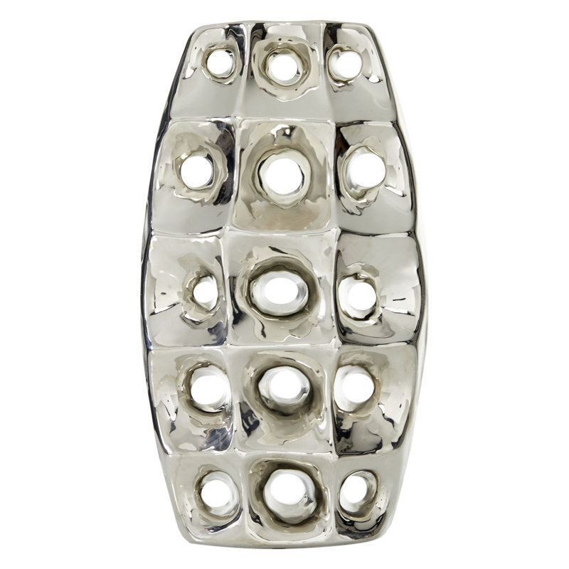 - Metal vase look with a shiny electroplated silver finish over the ceramic vase body with 15 cut-out holes