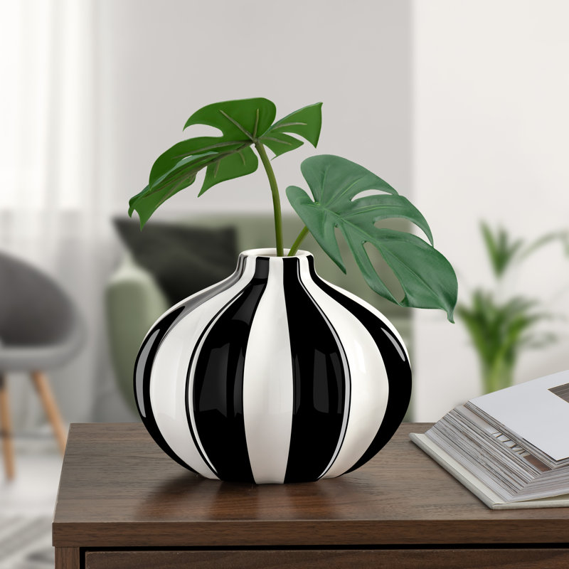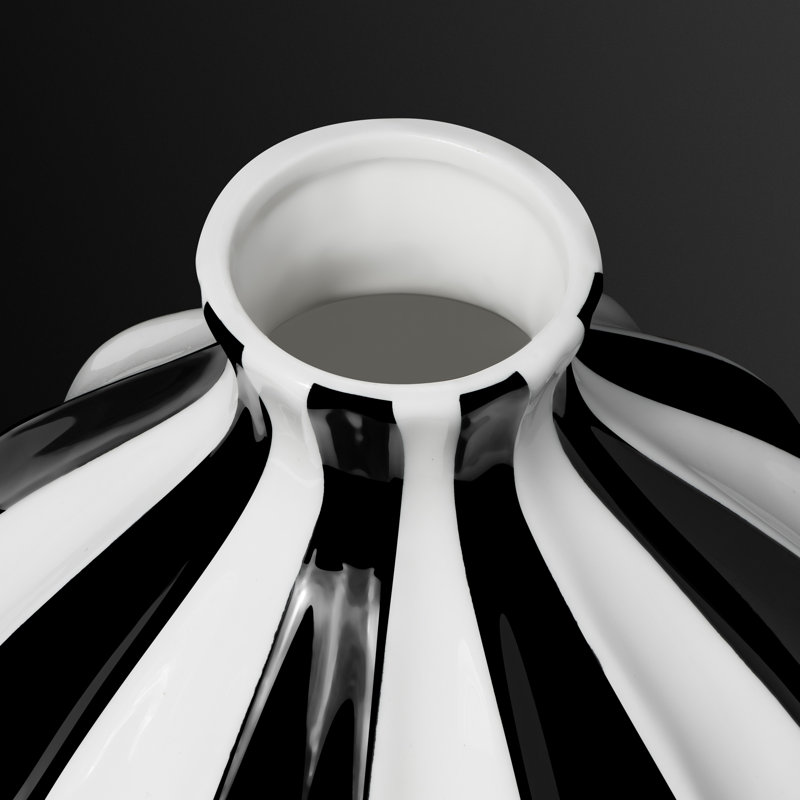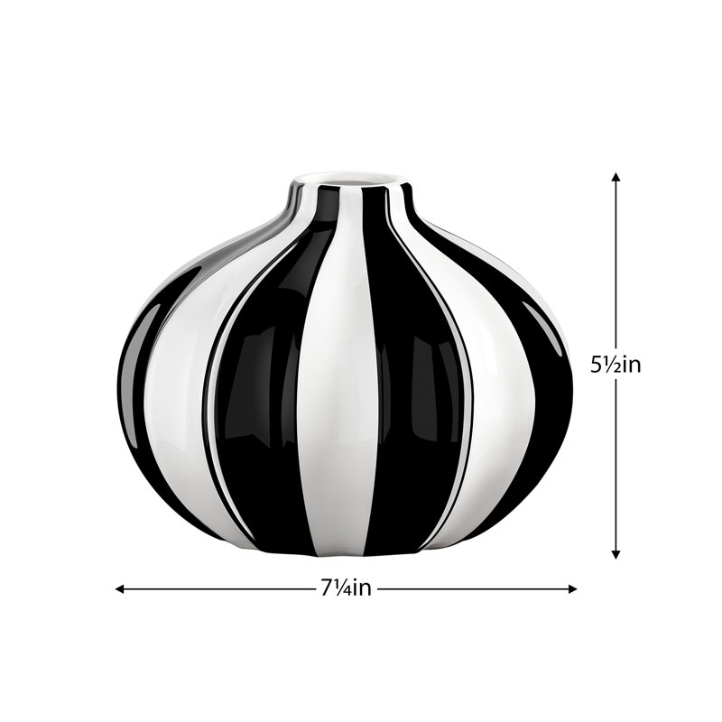 A truly modern design, display this unique black and white ceramic vase as a sculptural object or fill it with flowers or stems to create a lively work of art. With a Parisian-inspired design, this vase is ideal for a single stem or bouquet and provides the perfect backdrop for a fresh pop of color. The contemporary design of this decorative piece makes it a stylish piece for the mantle or side table for the living room or bedroom or as a welcoming accessory displayed on a shelf or console in the entryway. This striped accent vase would be ideal for a centerpiece on the dining table or at your next event. Home or office decor at its finest!