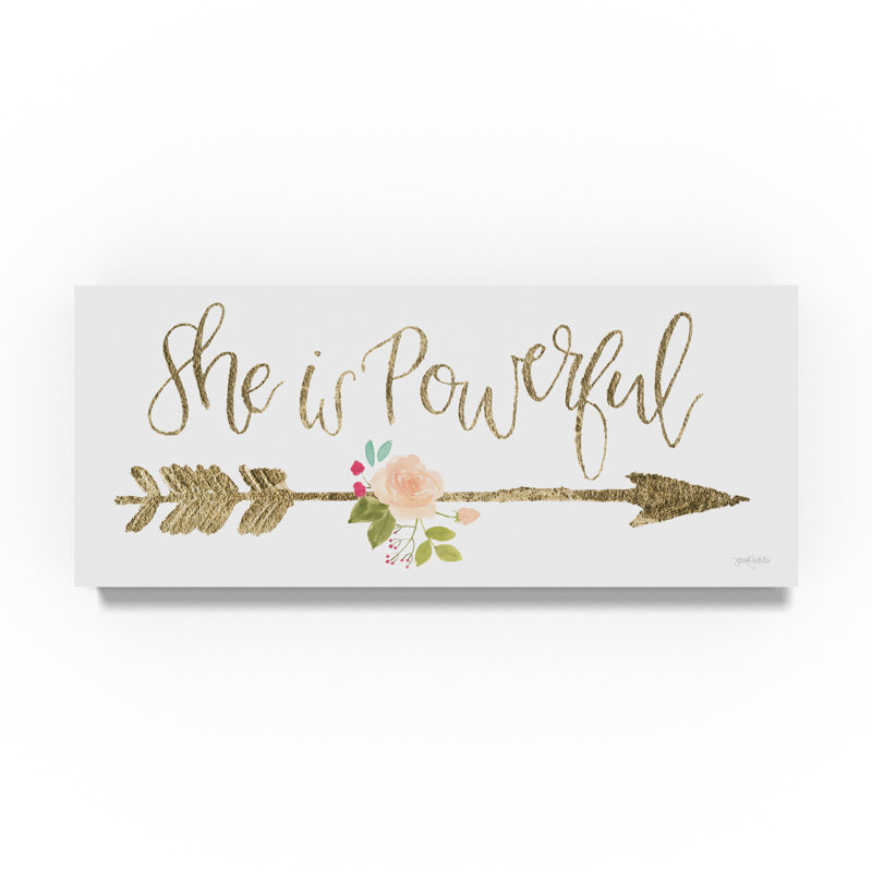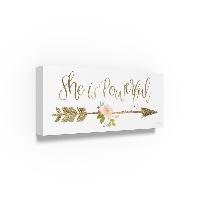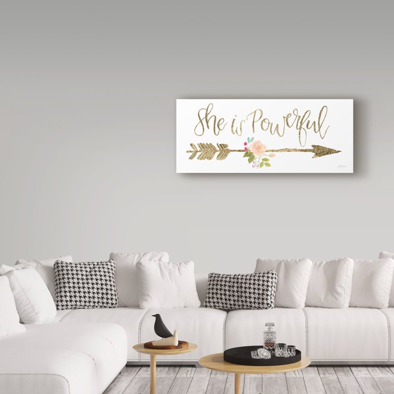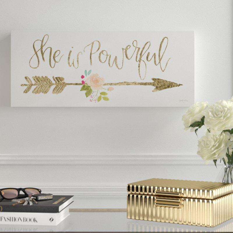 - This ready-to-hang, gallery-wrapped art piece features a gold arrow over a phrase.