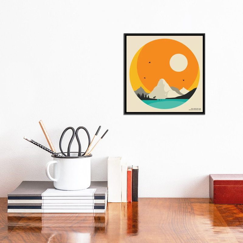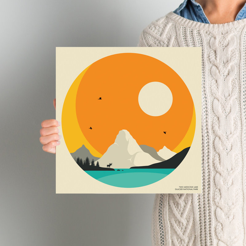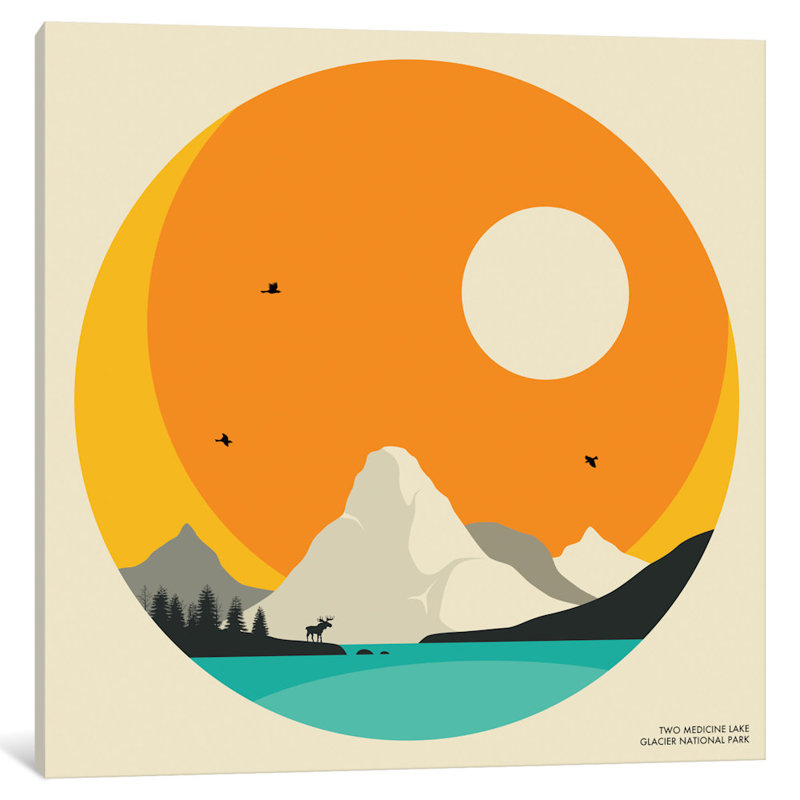 Life’s hectic. So, create a calming spot on your walls with this piece of wall art. Featuring a paired-down landscape of Glacier National Park with a round orange sky, this print has some serious calm…. Read More.