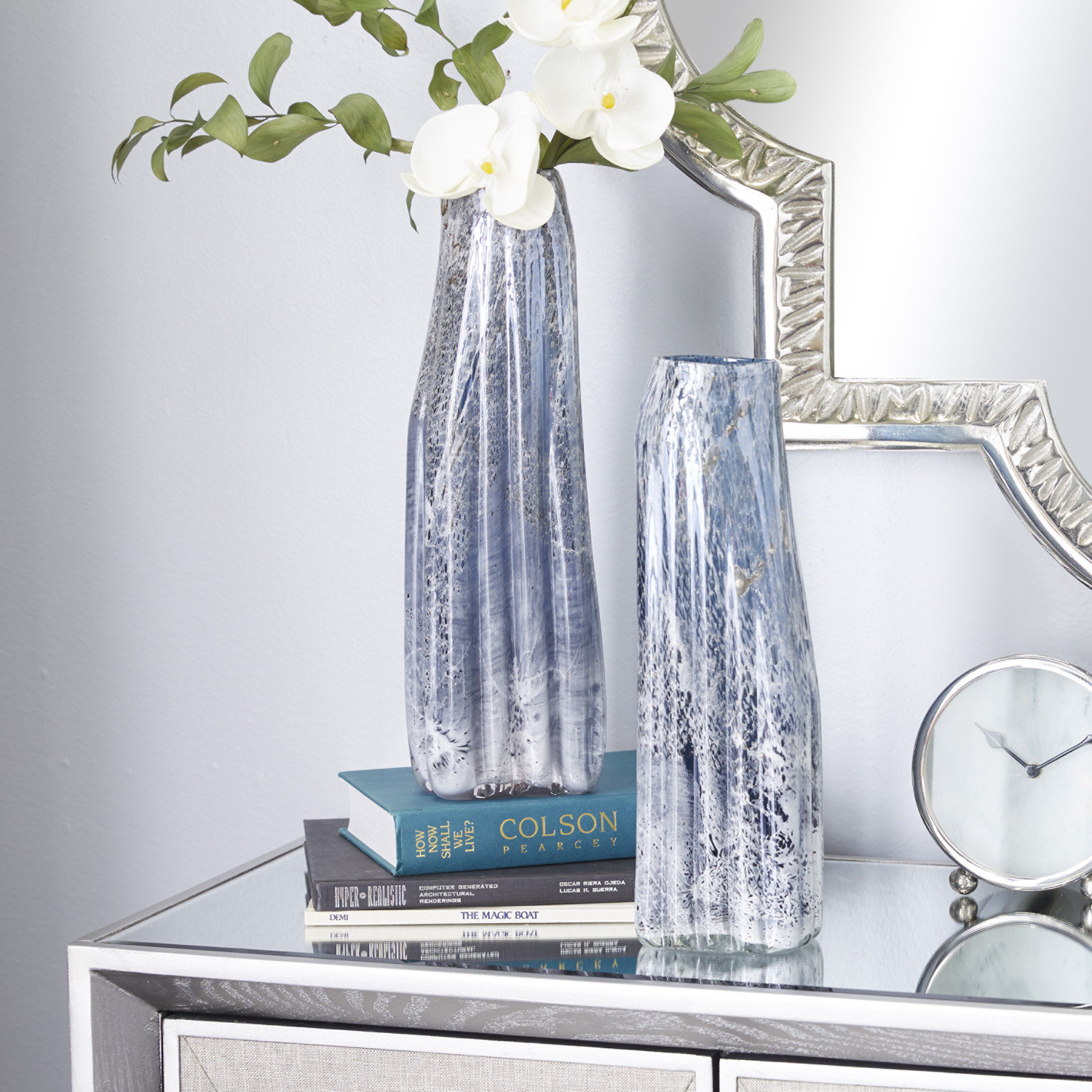 Appreciate their design best against solid-colored backgrounds in contemporary settings. They make great unique decor on mantles, console tables,s or in any living space. Due to the handmade nature of this item, no two will be alike, there will be slight differences in shape, size, and color. Suitable for indoor use only. This colored vase comes as a set of 2. Contemporary style. Vases have 2.40 in, and 2.40 in mouth openings.