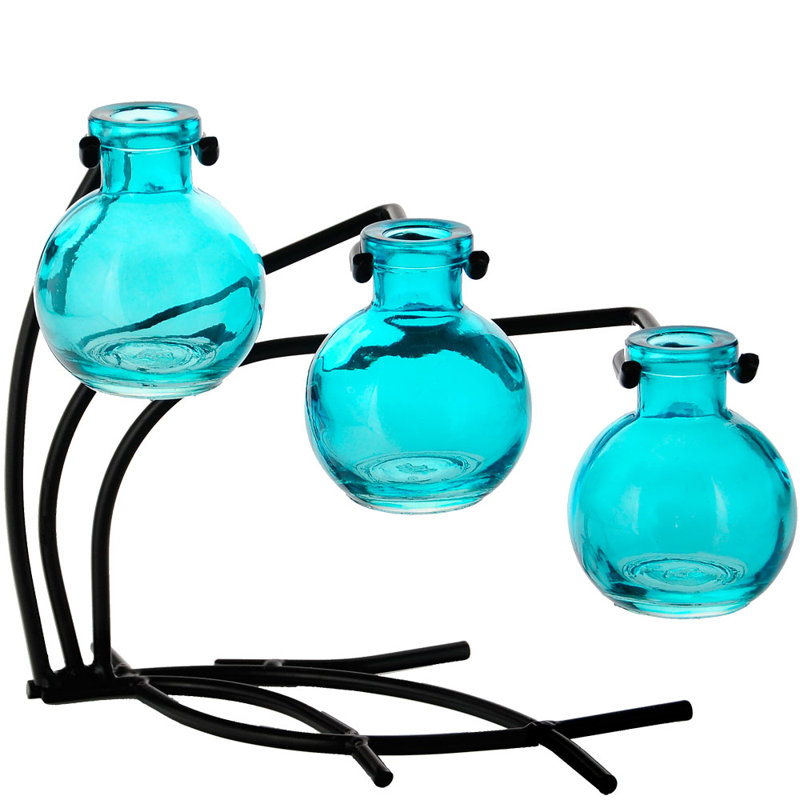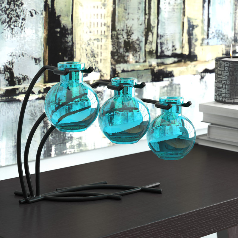 Eco-friendly and intriguing, this table vase is sure to spark conversation as your dining room centerpiece or entryway console anchor. Its trio of bud-shaped vessels are composed entirely of recycled glass, showcasing a transparent tone as they raise up your blooms at varying heights. This piece’s rust- and tarnish-resistant base forms a willow-inspired silhouette, showcasing a neutral solid finish. Measuring 7.5” H x 10” W x 6” D, this item is any easy fit for just about any tabletop.