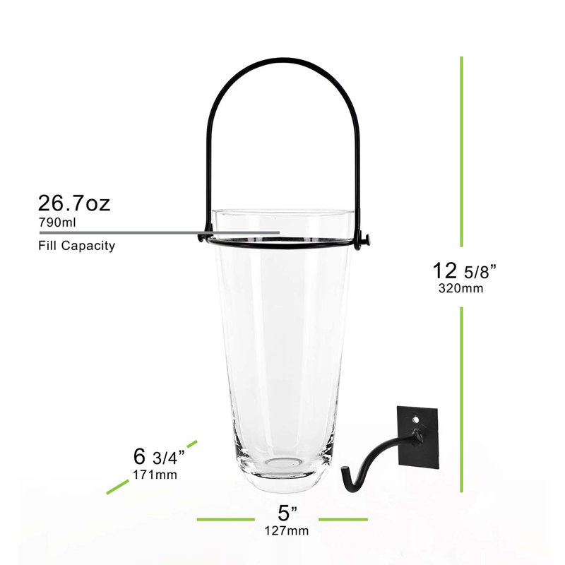 The Latitude Run Co. Almere Hanging Vase with Wall Hook offers modern styling and multi-functional usage for your floral needs. The tapered vase holds a bountiful bouquet of fresh cut flowers or silk florals. The set includes a 4″ metal wall hook for attaching to fences, posts, or walls. The powder-coated metal hanger is detachable for easy cleaning/rearranging or to use the recycled glass vase alone for a completely different look.