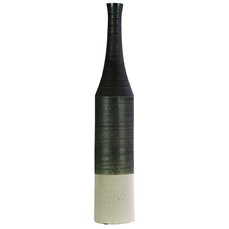 - Narrow mouth, long neck, cream banded rim bottom and combed design body coated finish