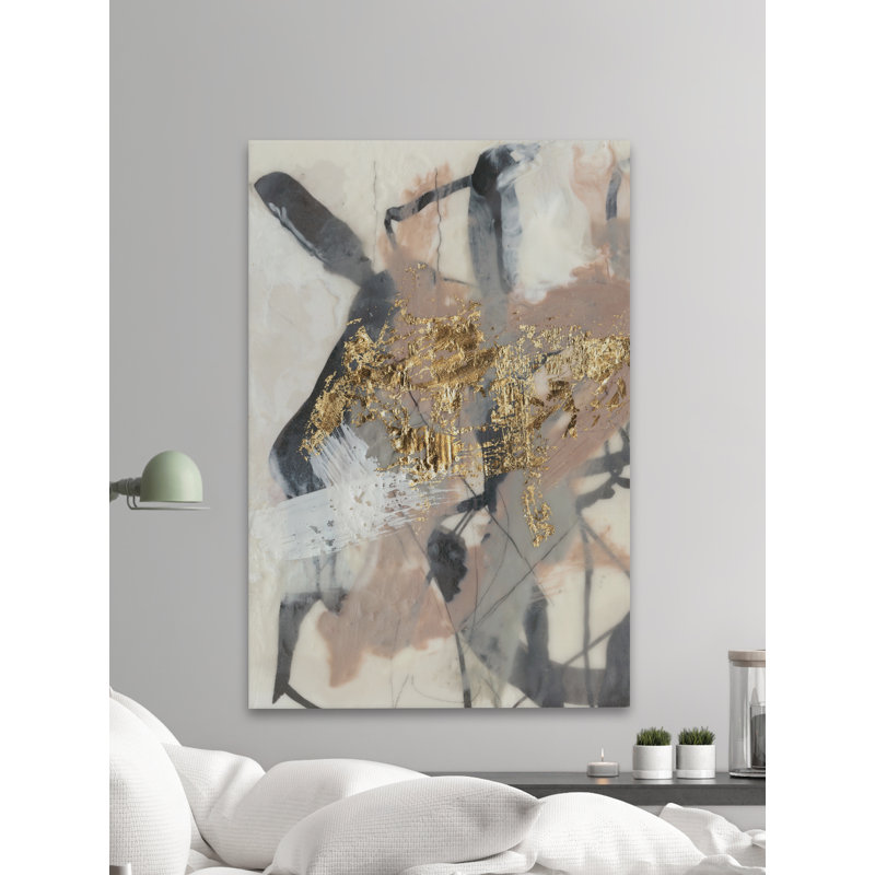 Taking cues from contemporary designs, this acrylic painting print showcases a modern image in cool gray, gold, blush, and beige tones for a subdued splash of color. Proudly made in the USA, this piece is printed on canvas before it’s stretched over non-warping wooden bars for a gallery-wrapped look. With wall-mounting hooks included, this artful accent is ready to hang up vertically as soon as it reaches your front door.