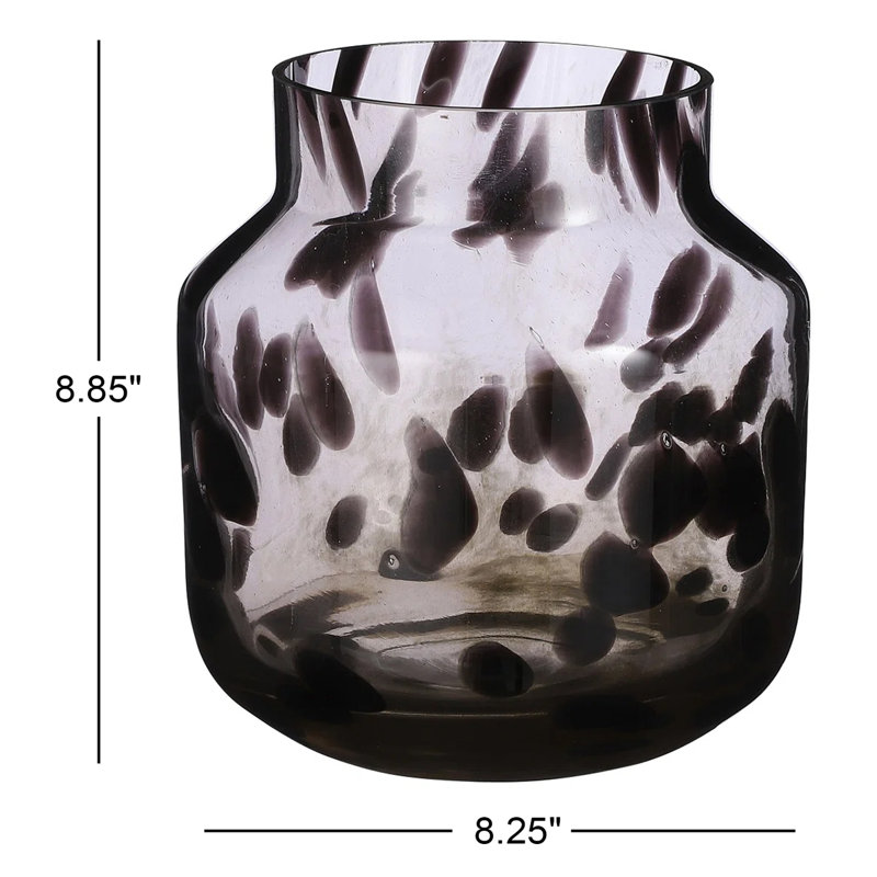 A modern twist on a classic piece. Crafted from tinted glass, this table vase is accented by dark abstract brushstrokes for an eye-catching design we love. It’s available in your choice of color and size for versatility, and its wide, round bowl with a tapered top is just-right for displaying flowers and foliage. Indoor use only.