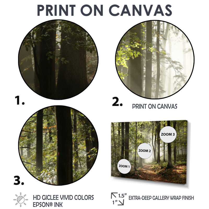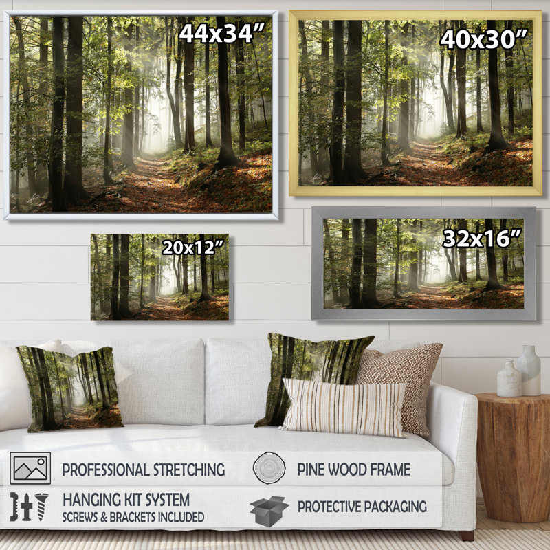 Green Fall Forest with Sun Rays – Forest Photograph Print