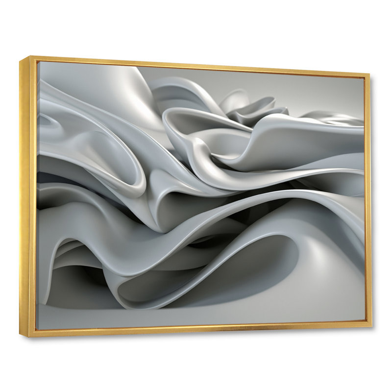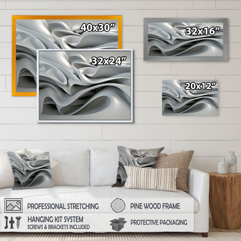 Grey Infinite Ripples – Abstract Modern Waves Framed Canvas Print