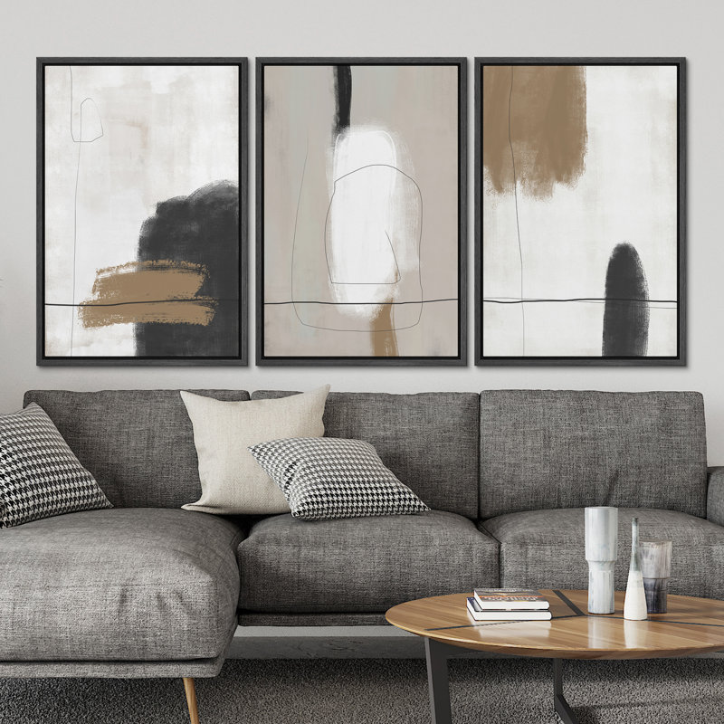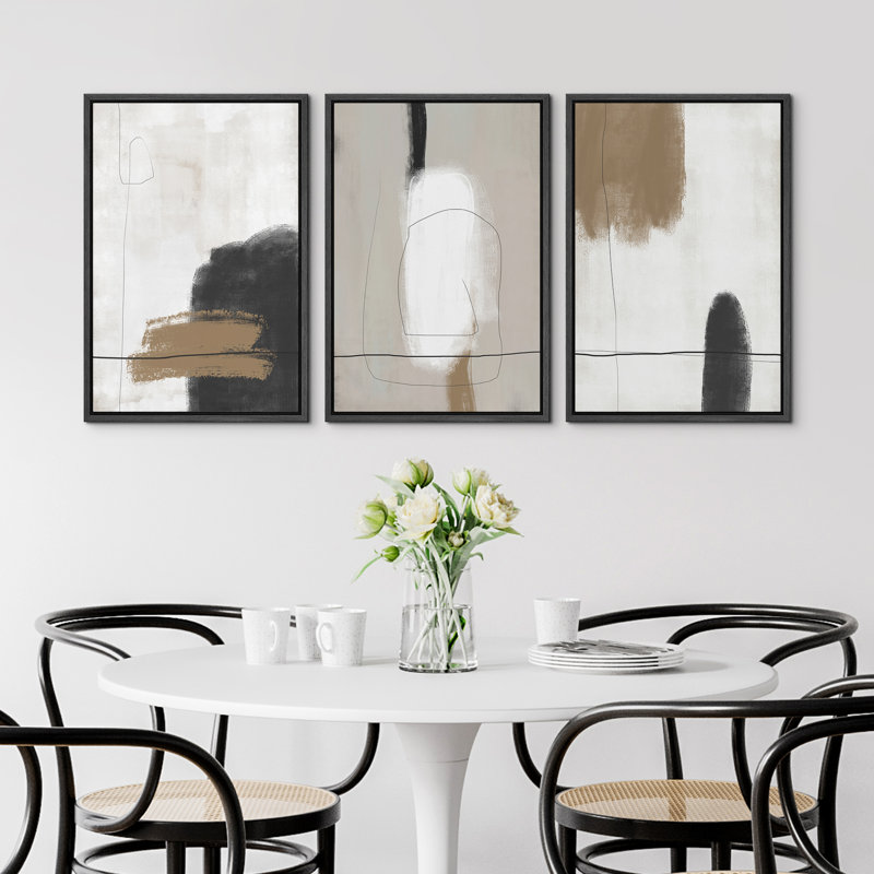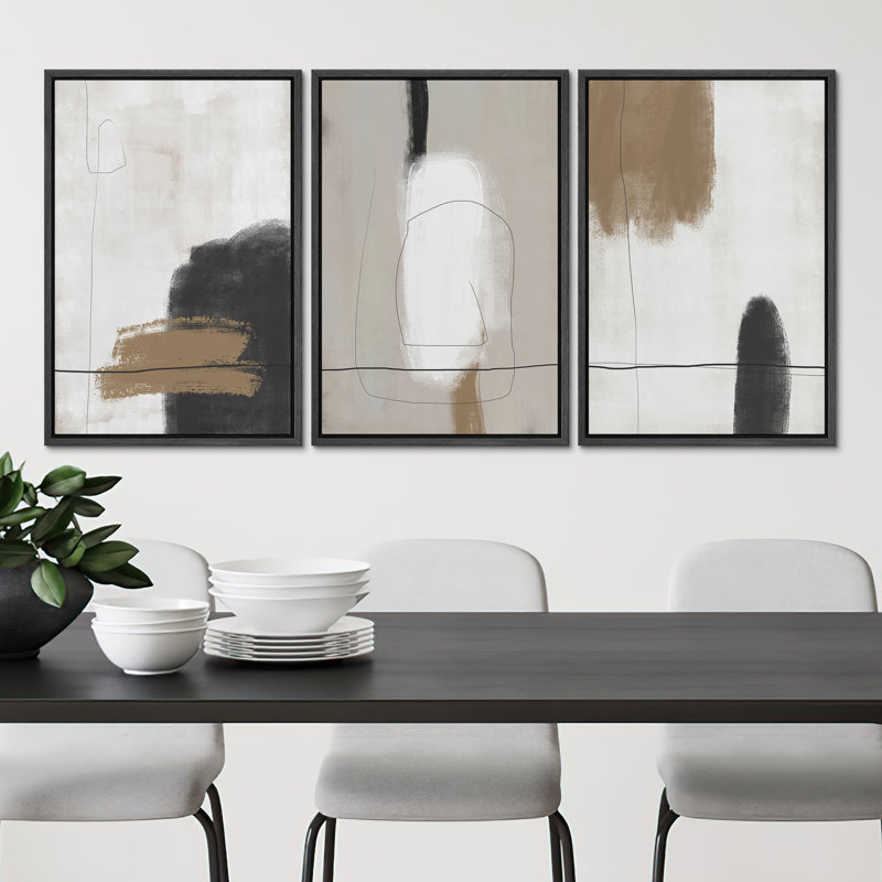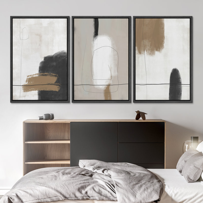 SIGNLEADER Neutral Framed Canvas Print Wall Art Set Grunge Brown White Paint Strokes Abstract Shapes Illustrations Modern Art Bohemian Nordic Relax/Calm For Living Room