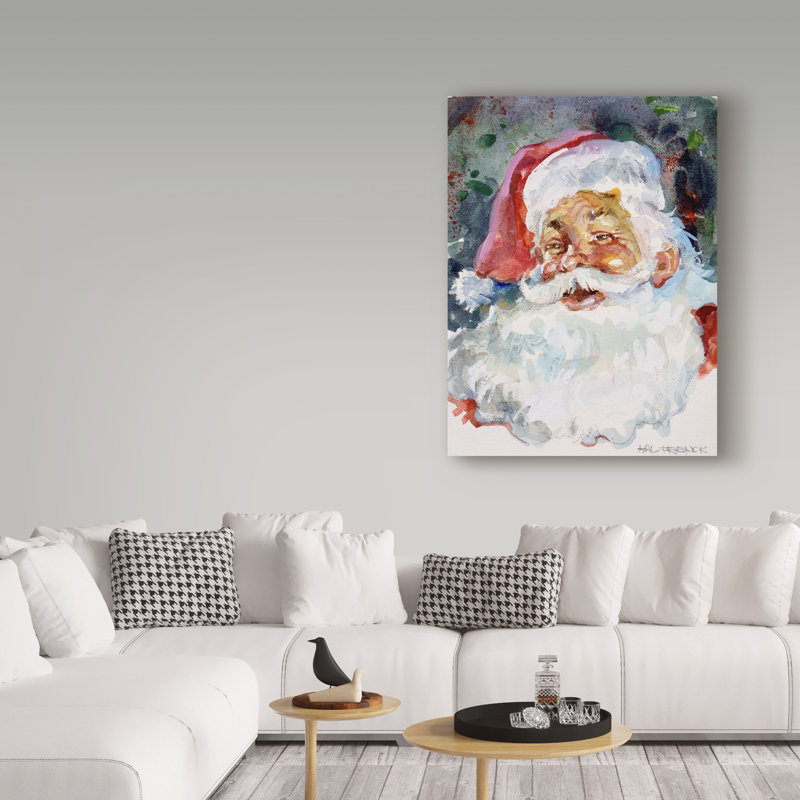 - Gallery-wrapped art piece features a portrait of Santa on a dark background