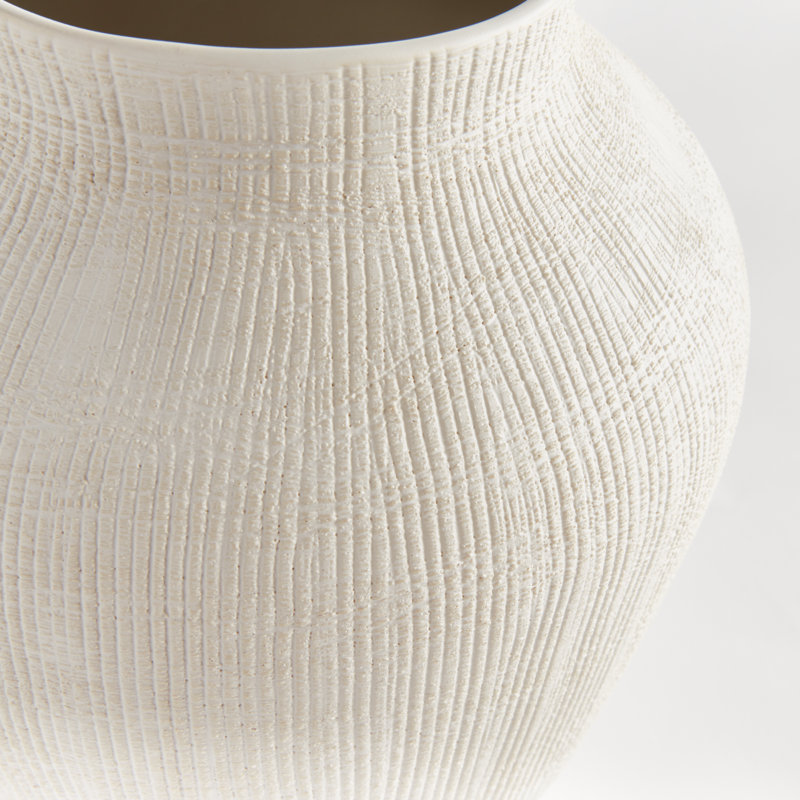 In a modern silhouette with a subtle linen-like texture, reactive glaze and high gloss finish, this ceramic vase is a stunning accent. Another high end accessory by iconic lifestyle & interior designer Barclay Butera