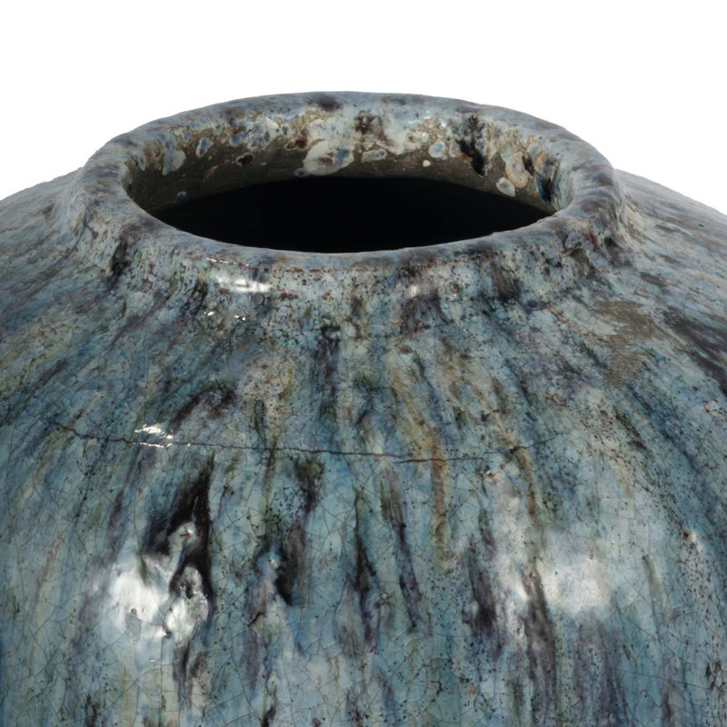 Sometimes, the thoughtful little decorative pieces are what make a house a home. Like this decorative vase, for instance, not only does it fill in the blanks of any interior design, it can be filled with fresh flowers, dried flowers, artificial grass, twigs – you name it – and used as a centerpiece, mantelpiece accent, and more, the stylistic possibilities are endless. Handcrafted from 100% terracotta, with weathered details in a cool blue palette, set it on your end table, night stand, or desk, to tie any room together. It measures 16” H x 13” W x 13” D.
