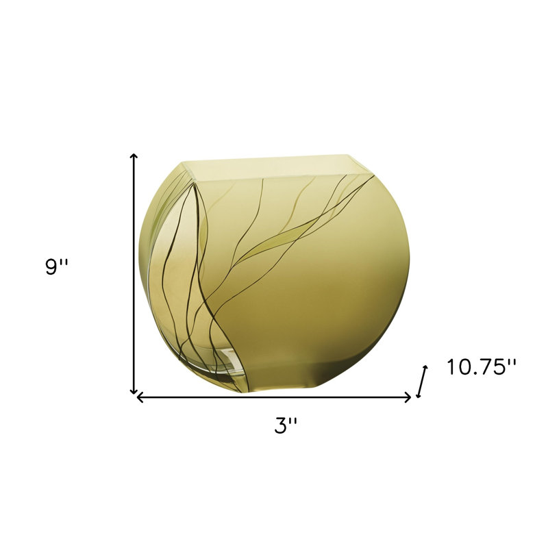 Hawking 9″ Green Round Crystal Glass Table Vase With Sculptural Details