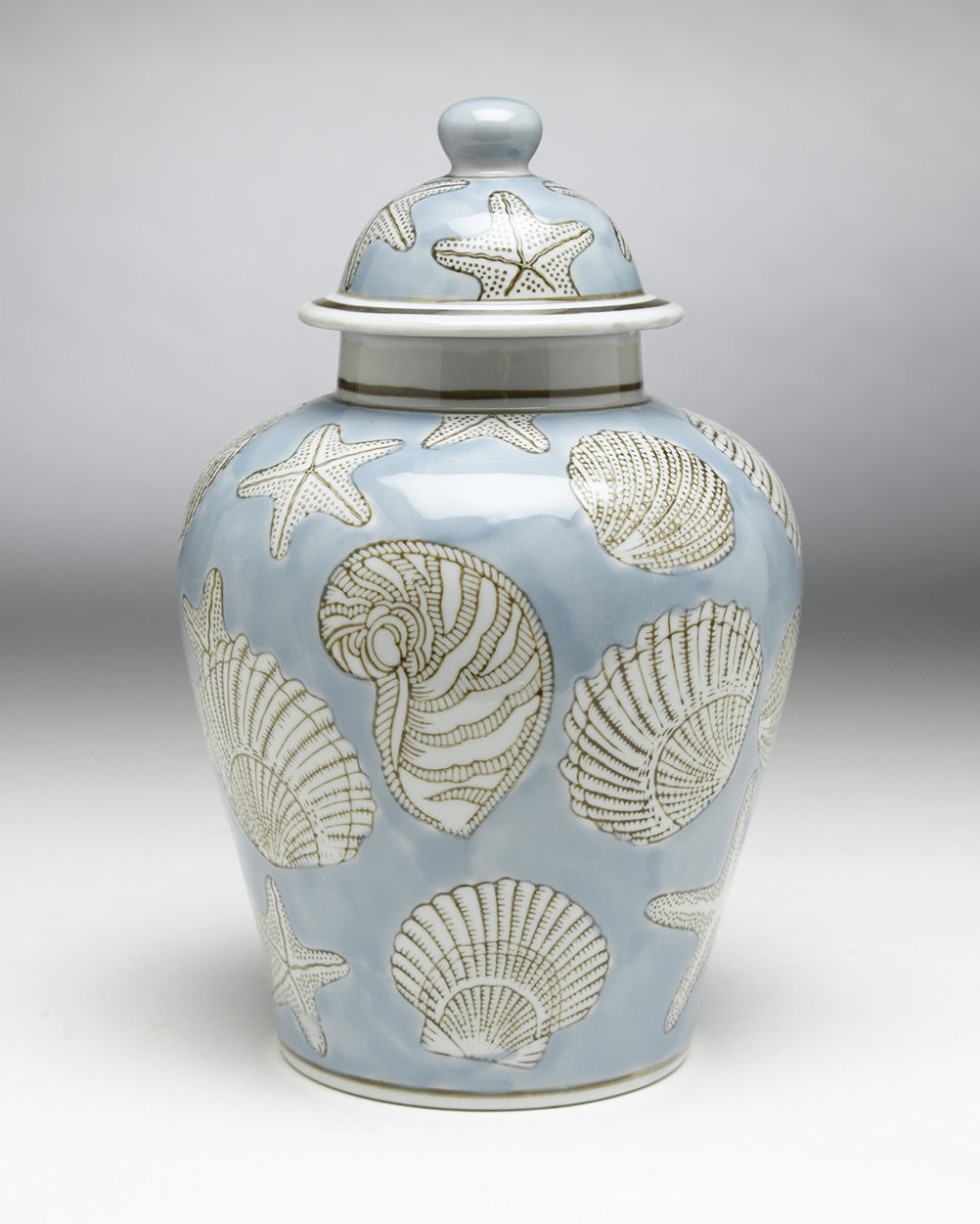 The Helvey seashell urn deserves a spot in your jar collection courtesy of its classic form and design. It is made of porcelain material, boasting a bulbous shape with a seaside aesthetic€”a collection of starfish, clam, and conch patterns. You can place this in your china cabinets for display, and it would definitely be an eye-catching piece. The urn comes with a matching lid.