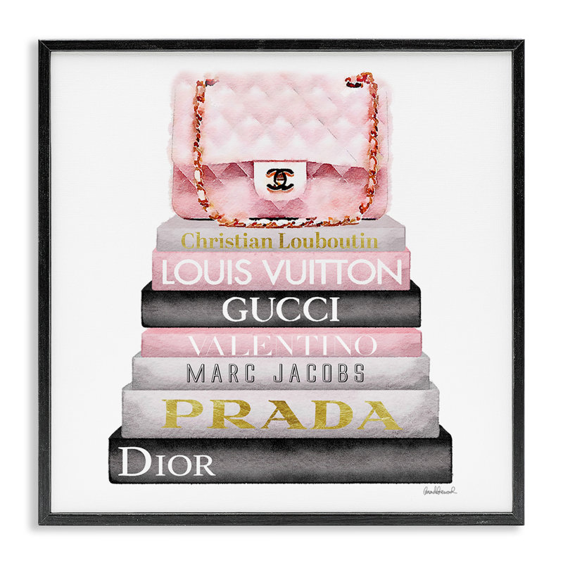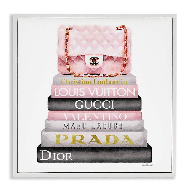 Ideal for the fashion aficionado, this on-trend graphic art print brings a stunningly glam vibe to any room in your home. Reproduced from an original work, it features a dazzling pink handbag resting on top of a stack of books with some of the most well-known fashion brand names on the spines. This piece is printed on a square surface to create a look that rivals any gallery. And, with multiple sizes available, you can find just the right one to suit your space.