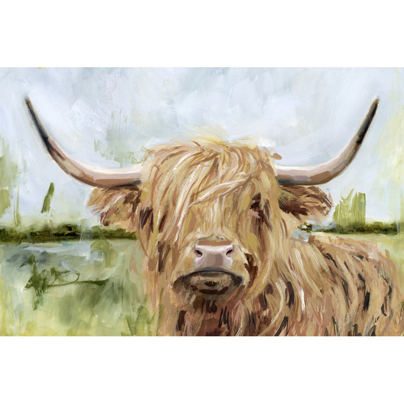 This wall art brings a natural scene and neutral palette to your space. Originally created using acrylics, it’s printed on a rectangular canvas with a horizontal orientation. This painting print showcases a stylized brown cow with long, fuzzy fur and horns. It’s set against an impressionist-style landscape in natural green and blue hues. We love how this piece looks hanging above your entryway console table or living room sofa, and it includes wall-mounting hardware for easy setup. Charming and rustic, it complements nearly any industrial or lodge-inspired decor.