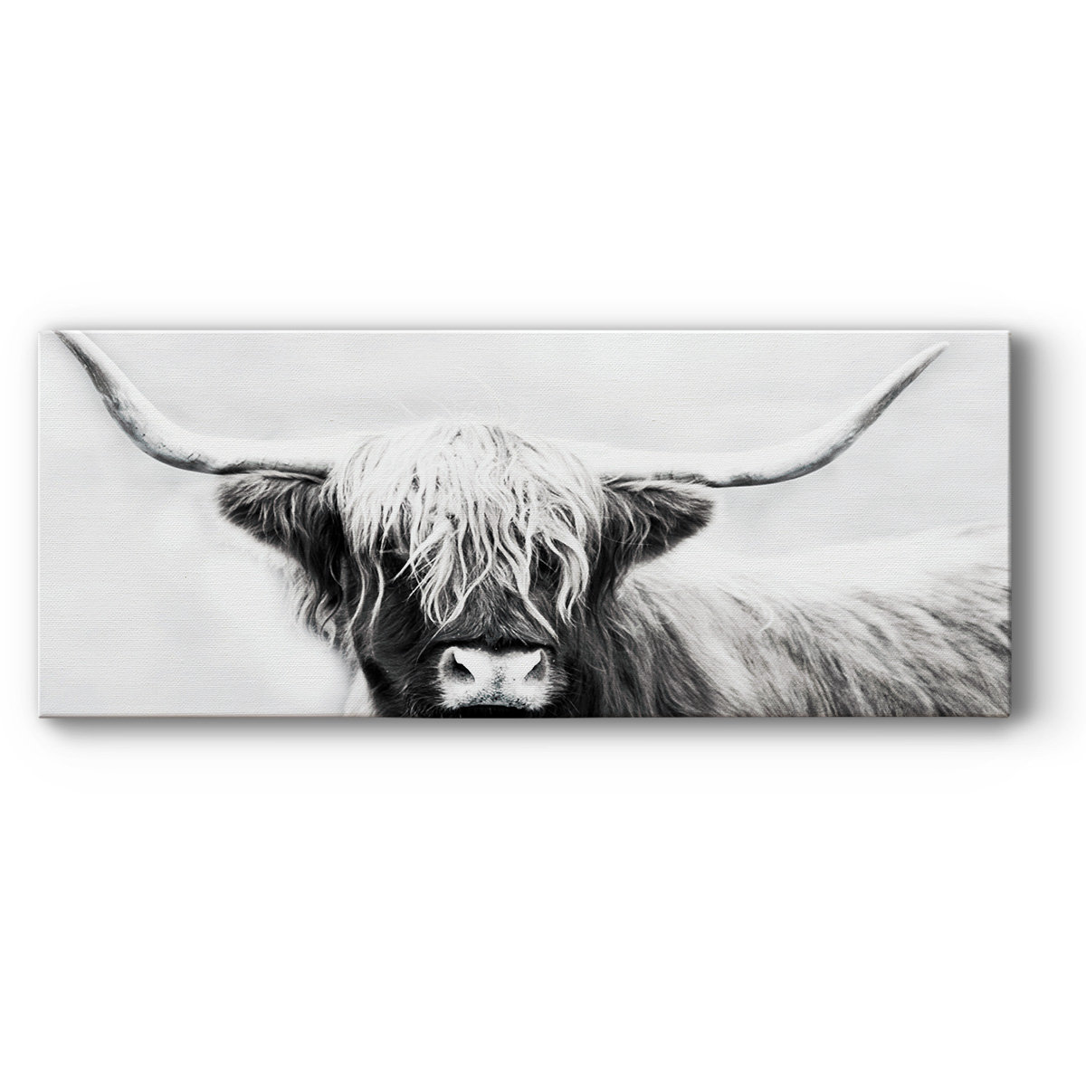 “Highland Longhorn” gallery-wrapped canvas. A hand-stretched canvas. Each piece is made to order. Built to last. Each piece comes ready to hang. Solid wood stretcher. Fade and water-resistant. Made domestically.