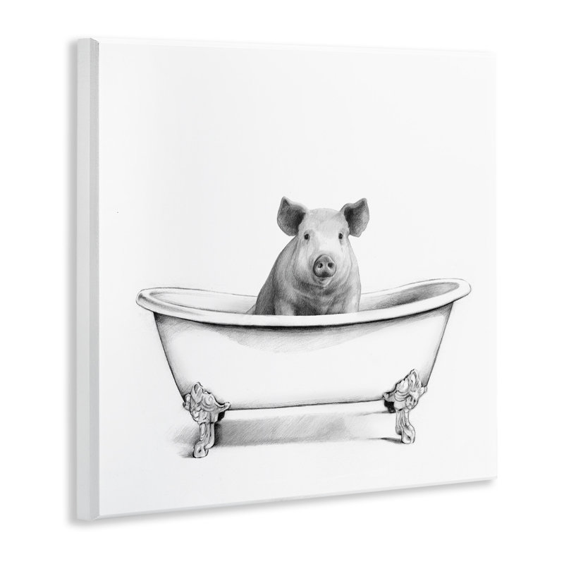 Hog in Bath Tub Minimal Bathroom Sketch by Victoria Borges – Drawing Print Print