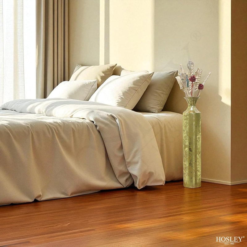 Enhance your space with the timeless elegance of the Hosley Decorative Gold Metal Tall Floor Vase. Standing at an impressive 27.25 inches high, this stylish vase makes a bold statement in any room. Crafted from durable metal and finished in a luxurious gold tone, it brings a touch of sophistication and warmth to both modern and traditional decor.