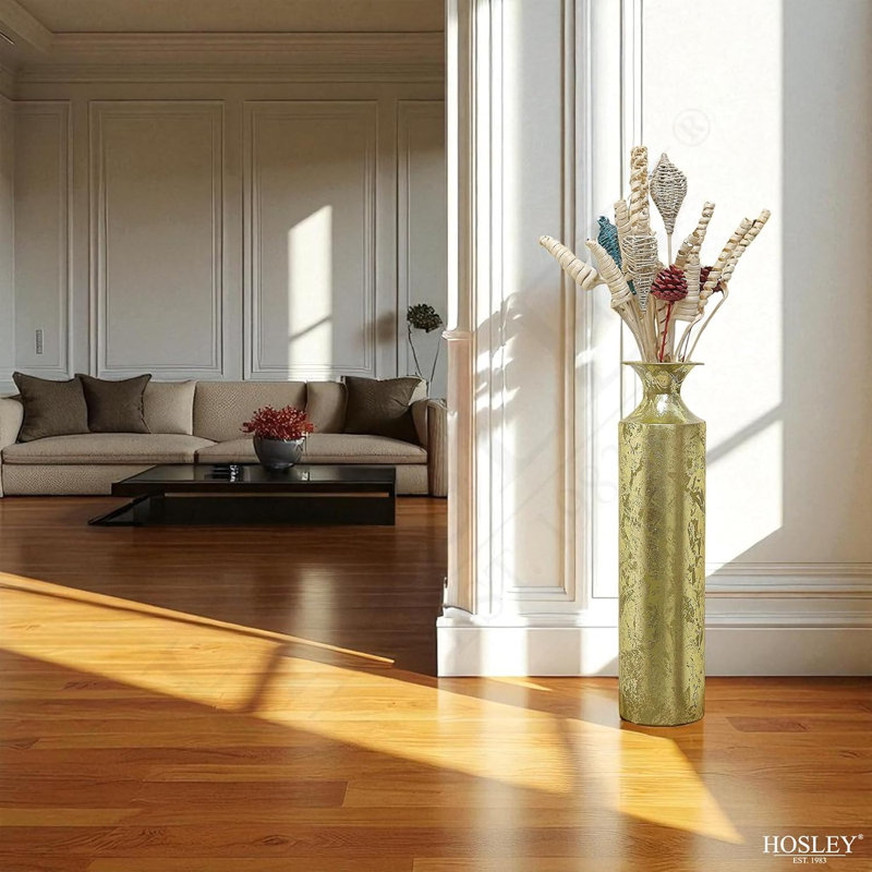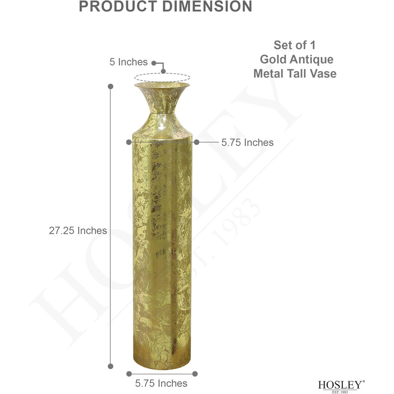 - PRODUCT: Hosley’s Decorative Gold Metal Tall Floor Vase 27.25 Inch High