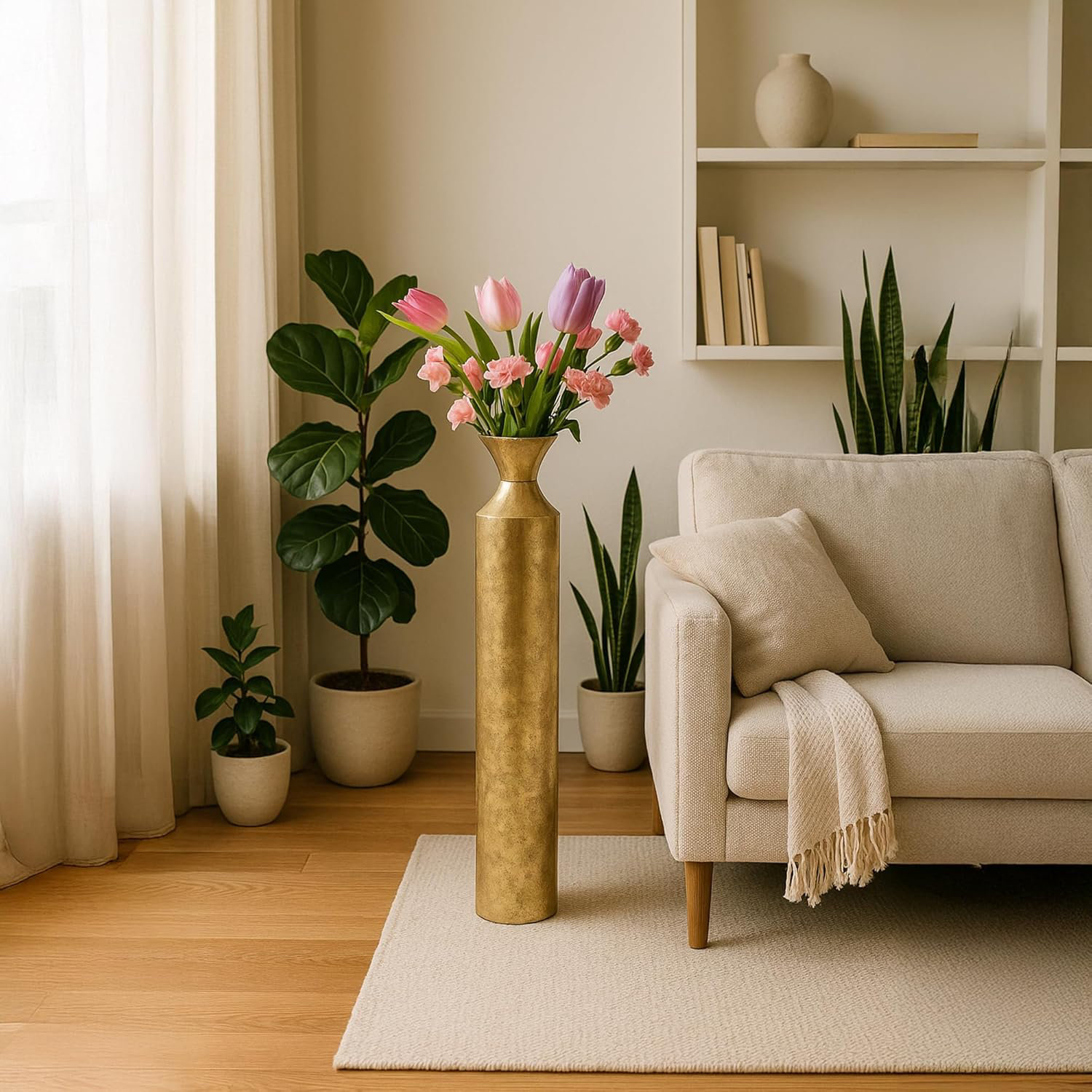 Enhance your space with the timeless elegance of the Hosley Decorative Gold Metal Tall Floor Vase. Standing at an impressive 27.25 inches high, this stylish vase makes a bold statement in any room. Cr…. Read More.