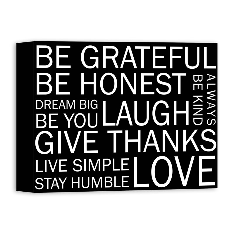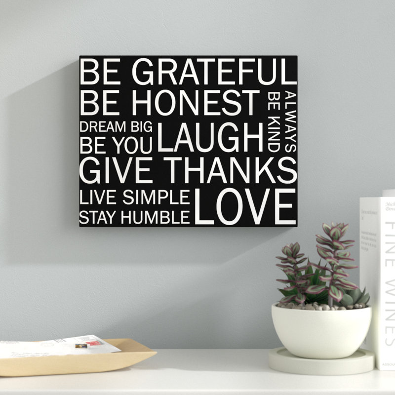 This textual art canvas print brings inspirational words and streamlined style to any space. This rectangular piece features a series of encouraging words and phrases printed in varying sizes in white on a simple black background. It’s printed on canvas and stretched over engineered wood. This piece comes with wall mounting hardware, so it’s easy to hang horizontally in your bedroom, living room, home office, or playroom. It completes the look of any modern or minimalist space.