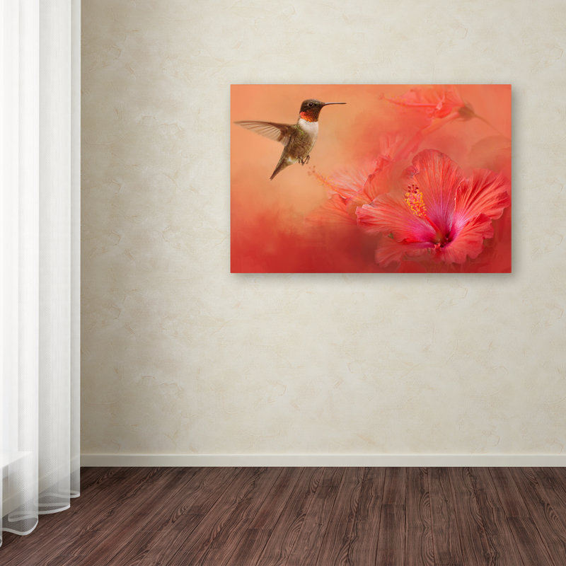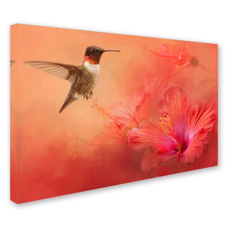 Jai Johnson ” Hummingbird And Peach Hibiscus ” by Jai Johnson