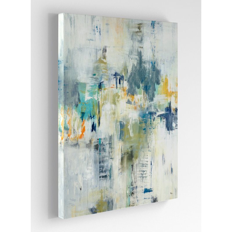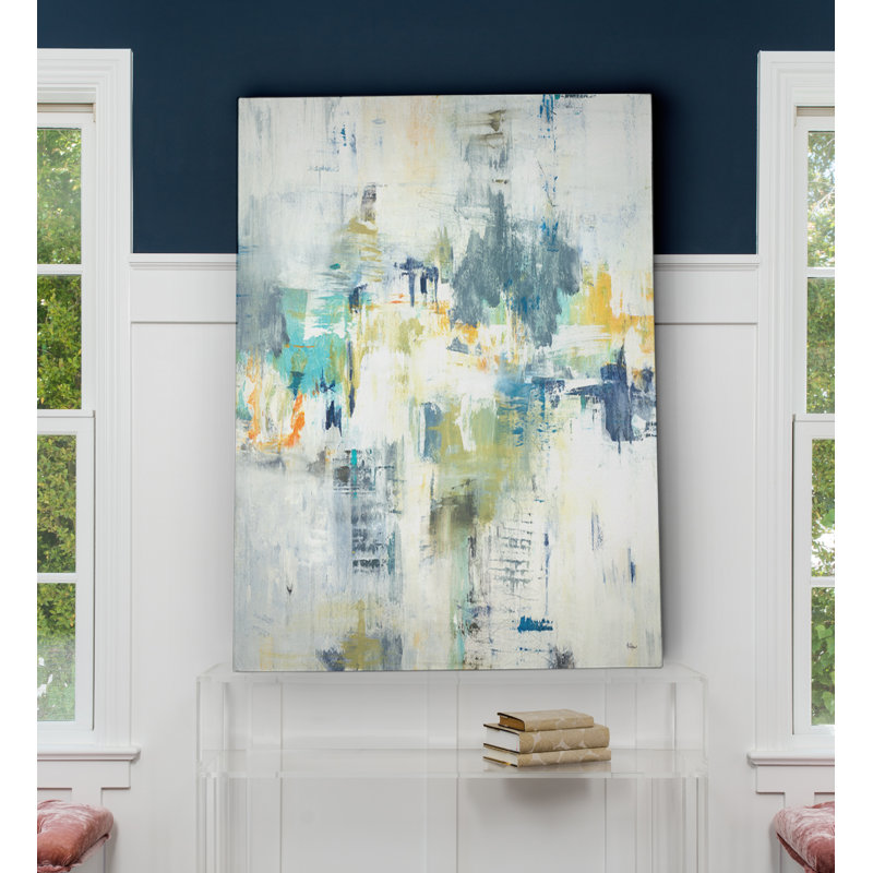 This modern-style painting print brings splashes of color to any room and a look that’s reminiscent of Abstract Expressionist works. Titled “Just Relax,” it features soothing muted blue, gray, and yel…. Read More.