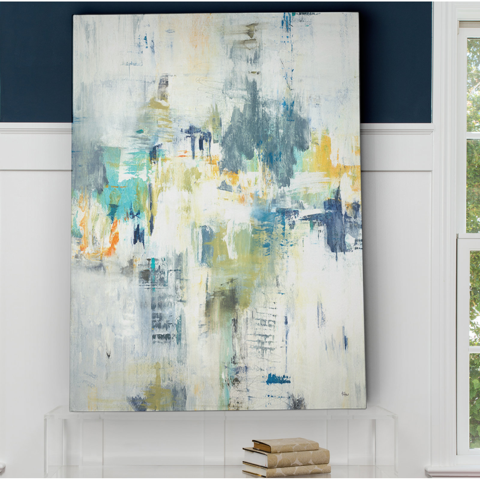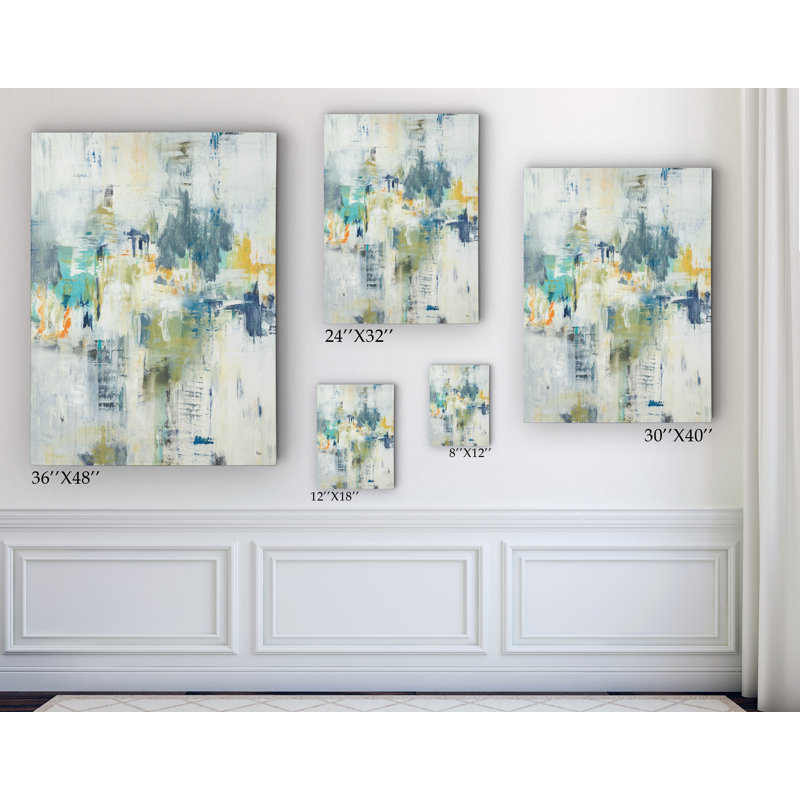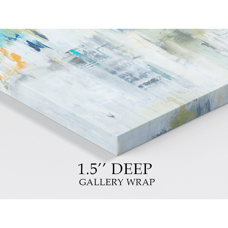 This modern-style painting print brings splashes of color to any room and a look that’s reminiscent of Abstract Expressionist works. Titled “Just Relax,” it features soothing muted blue, gray, and yellow tones to create a design that looks different depending on who’s viewing it. This rectangular watercolor painting is printed on a wrapped canvas with a variety of size options, so you’re able to choose the one to suit your space best. Two hooks are affixed to the back for hassle-free hanging right out of the box.