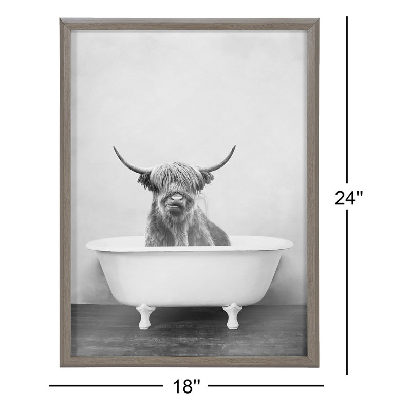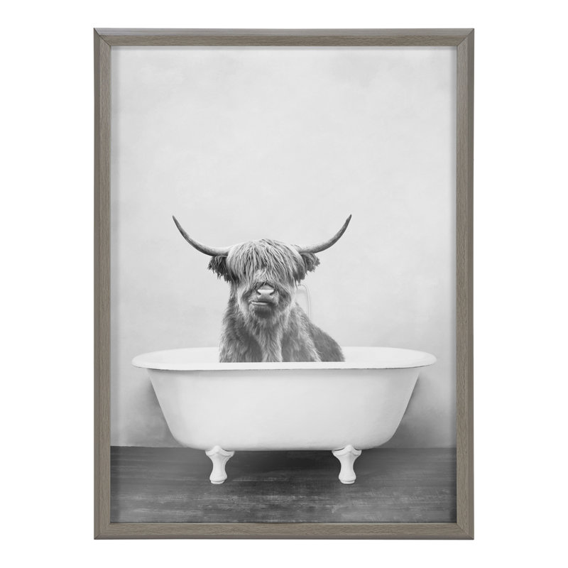 This wall art adds a playful touch to your bathroom with a fun image of a highland cow