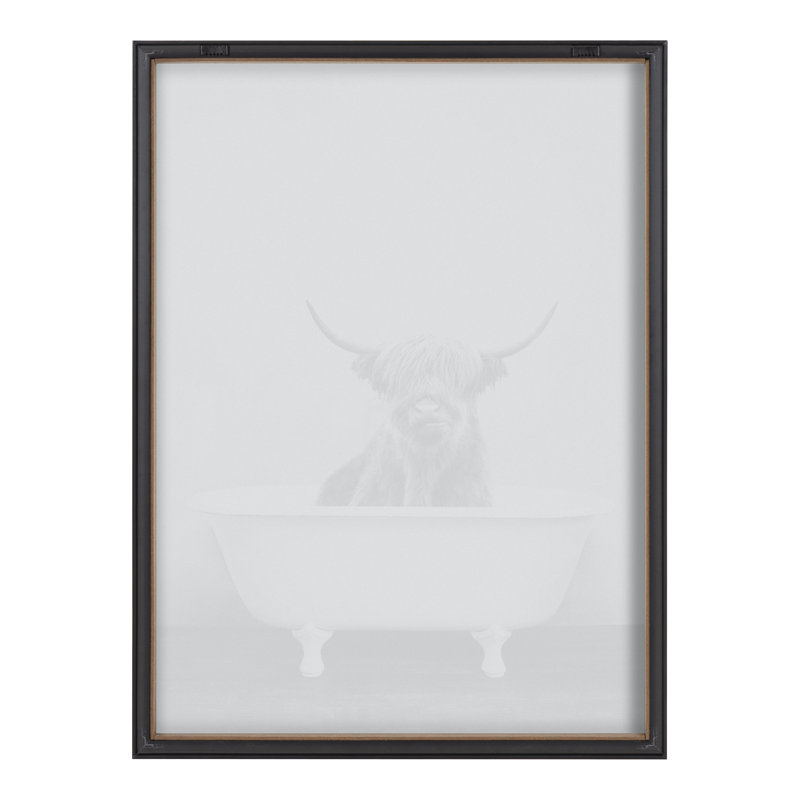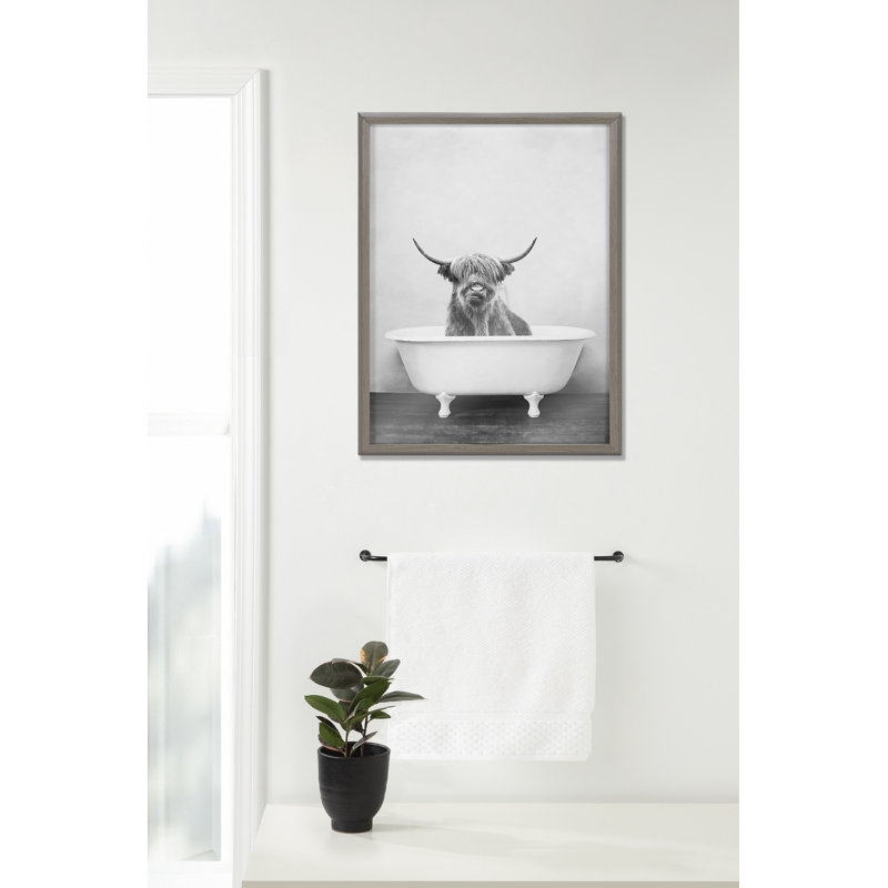 Karnecia Highland Cow in the Tub BW by Amy Peterson – Picture Frame Print on Glass