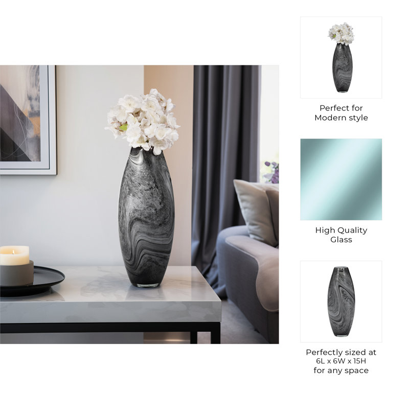 - Elevate the ambiance of your home with this luxurious hand-crafted vase, featuring a mesmerizing gray swirl pattern that captivates and impresses.