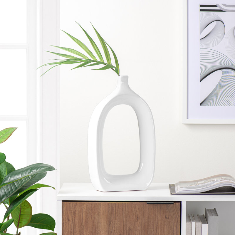 Keiko 15″ Modern Cut Out White Ceramic Vase