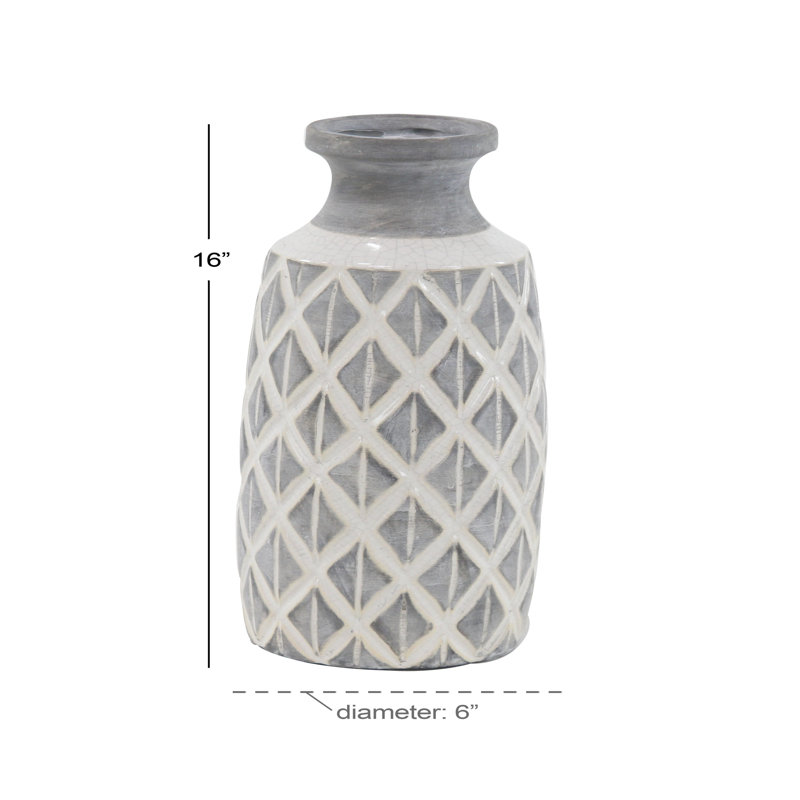 - Features a gray-finished narrow neck and spouted mouth with a diamond-textured pattern.