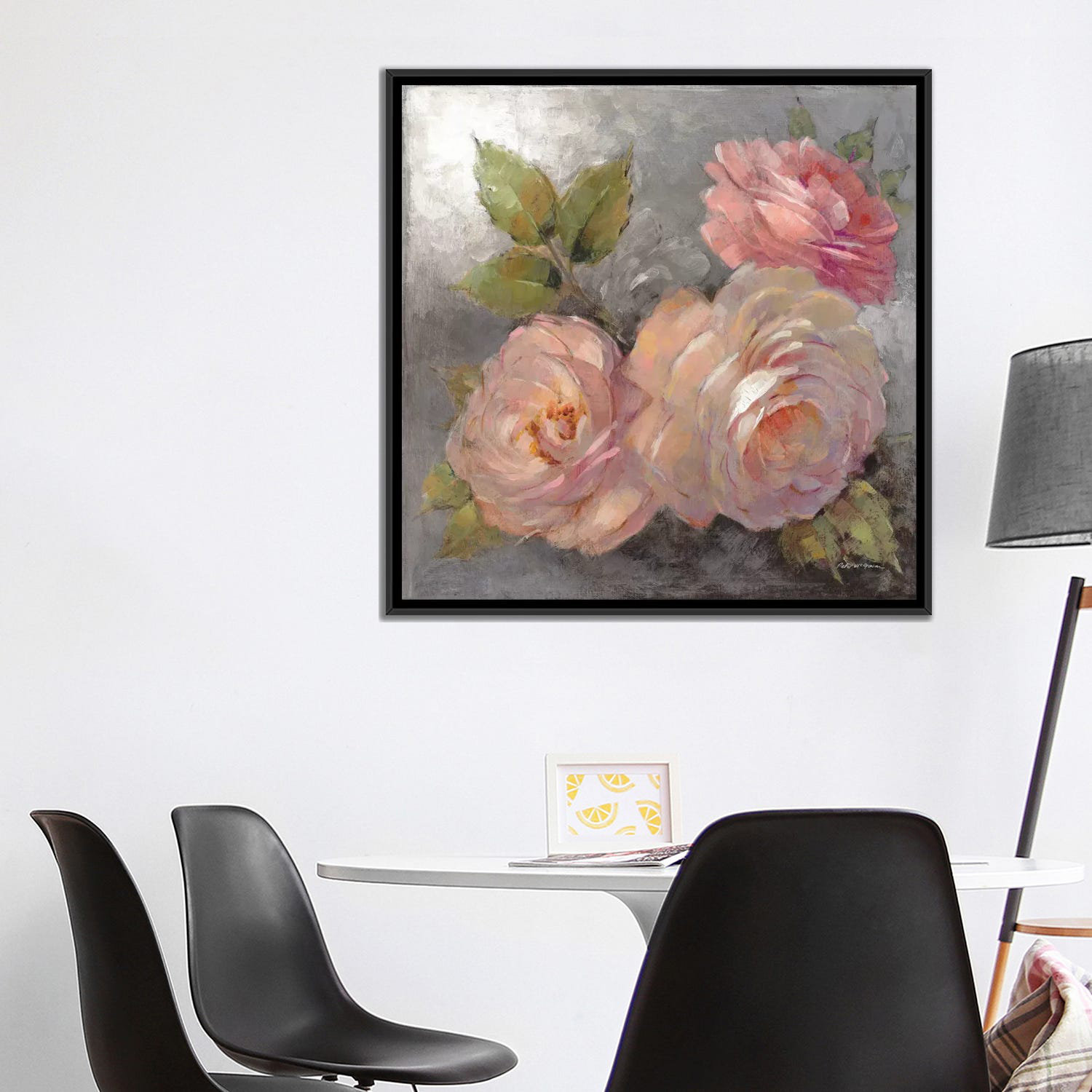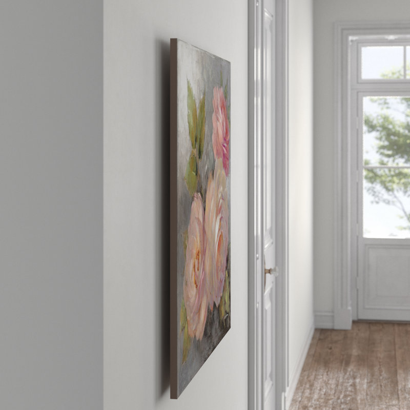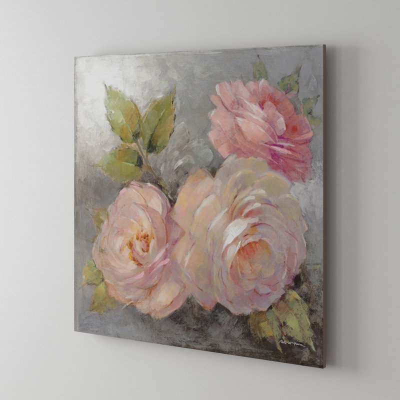 No matter how hard we try to keep them fresh, a vase of roses always wilts. This canvas painting print, however, showcases three roses and is printed with fade-resistant archival inks to keep the color vibrant, even when exposed to strong light. Each rose is rendered with pretty pink brushstrokes, and accented with green leaves and a gray background for neutral contrast. This print is made with 100% cotton canvas and gallery-wrapped over anti-shrink pine wood bars that make it easy to hang with the included hardware. Hand-curated by Kelly Clarkson.